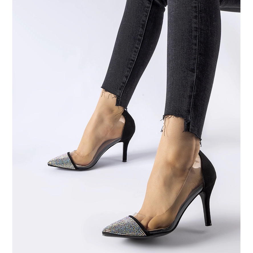 Detalii: Tocuri înalte negre cu zirconiu cubic și clearance Laceno negru