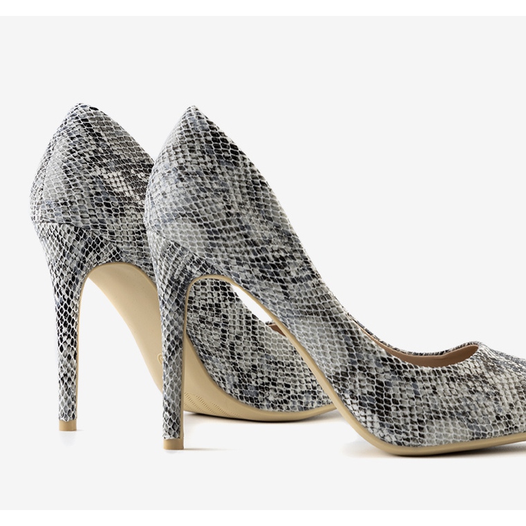 Descoperă eleganța și stilul clasic cu tocurile înalte Grace negre, care încântă cu un motiv original de piele de șarpe. Aceste pompe unice sunt alegerea perfectă pentru toate petrecerile și ocaziile speciale. Finisajul negru, din piele ecologică, nu numai că atrage atenția, dar și evidențiază perfect silueta, slăbind optic picioarele.