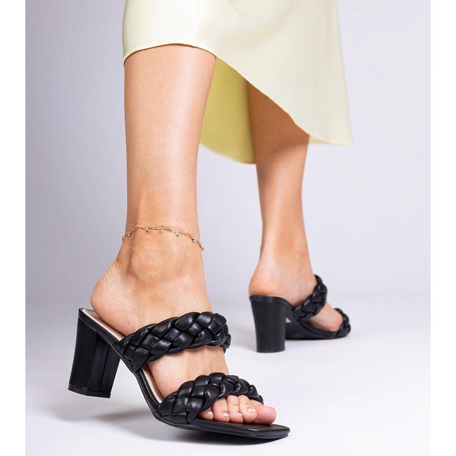 Descoperiți eleganța și confortul de a purta cu clapele țesute cu tocuri negre. Aceste papuci unice de femei combină stilul și funcționalitatea, potrivite ideal atât pentru zilele de vară, cât și pentru ieșirile de seară.