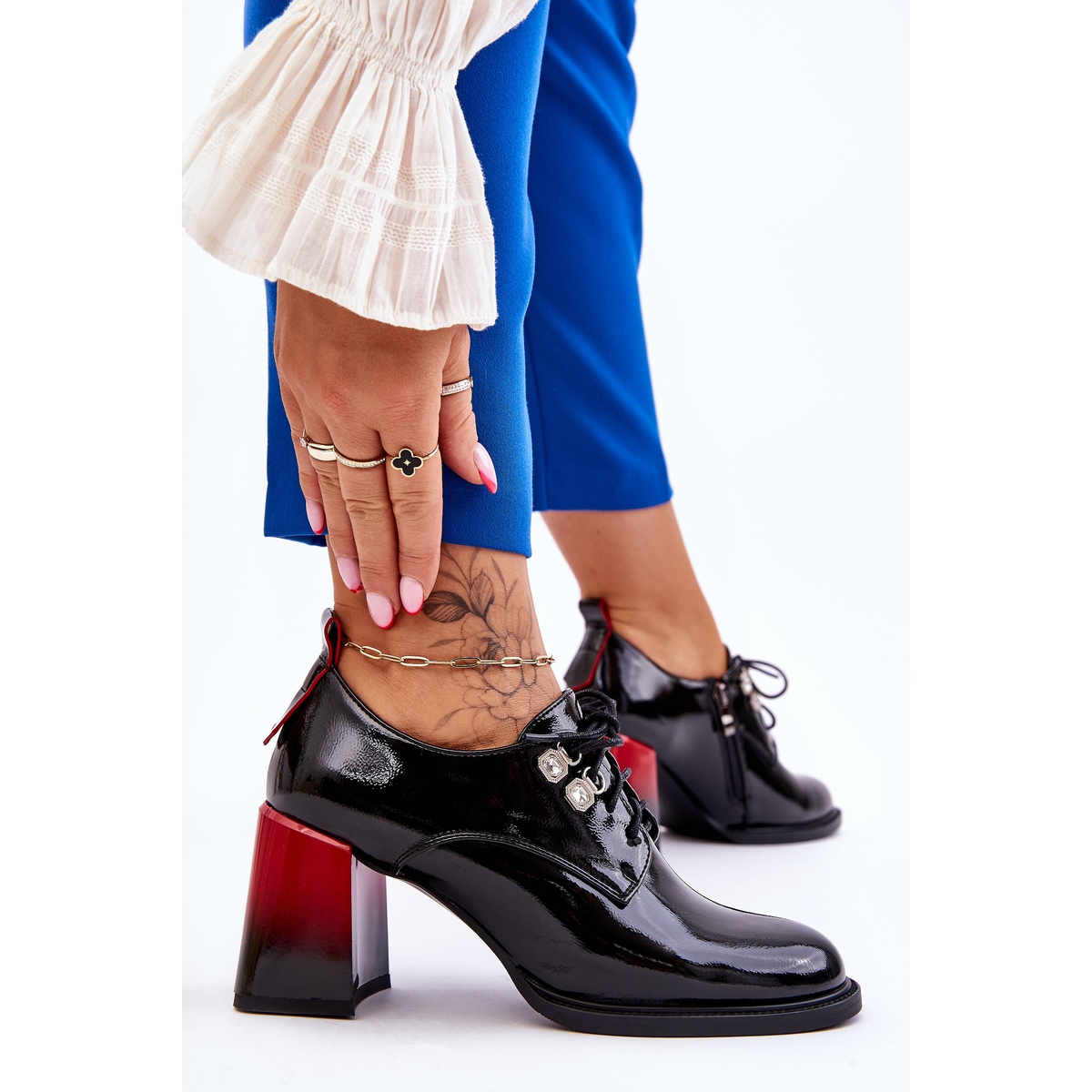 Acest model este cu dantelă și prins suplimentar cu fermoar pe lateral, ceea ce face mai ușor de îmbrăcat și de ajustat la picior. Interiorul pantofilor este echipat cu o inserție moale din piele naturală, asigurând confort pe tot parcursul zilei. Tocul bloc masiv de 8 cm înălțime garantează stabilitate, ceea ce le face o alegere ideală pentru diverse ocazii - atât pentru ieșirile de zi cu zi, cât și pentru întâlnirile de seară.
