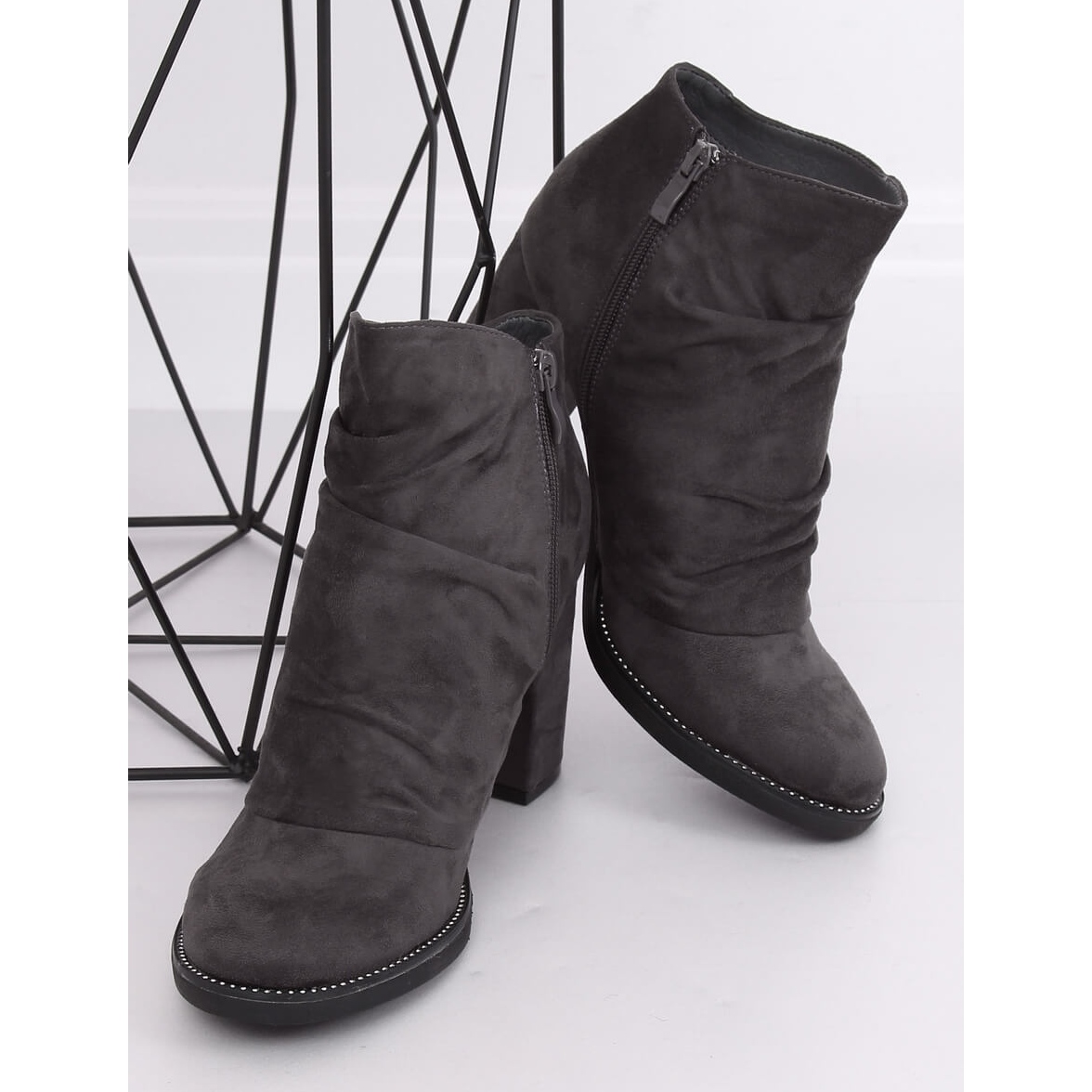 Descoperiți eleganța și confortul cu botinele cu toc înalt Puebla Grey într-o nuanță de gri. Aceste botine unice de dama, montate pe un toc stabil de 9 cm inaltime, imbina designul clasic cu cele mai noi tendinte. Elementul lor caracteristic este partea superioară cu volană, care le oferă un aspect la modă, iar strasurile subtile din ornamentul decorativ le oferă o strălucire unică.