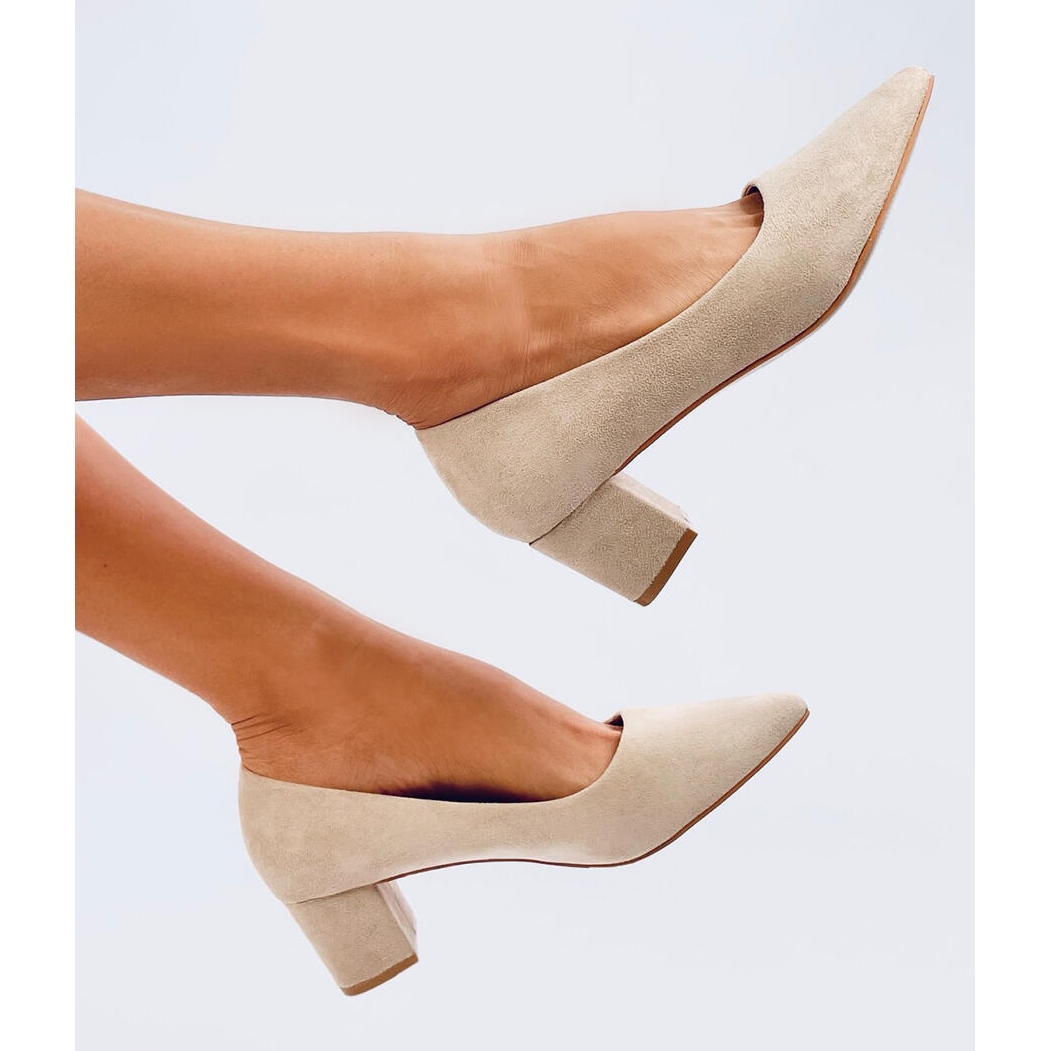 Pompele sunt confecționate din piele de căprioară ecologică, care nu este doar ecologică, dar impresionează și prin aspectul și atingerea ei. Interiorul pantofilor este căptușit cu piele ecologică, ceea ce crește în continuare purtând confort. Fixarea sub forma unei structuri glisante face mai ușor să se pună și să decoleze, iar culoarea lor netedă și bej le face să se îmbine perfect cu diverse stilizări.