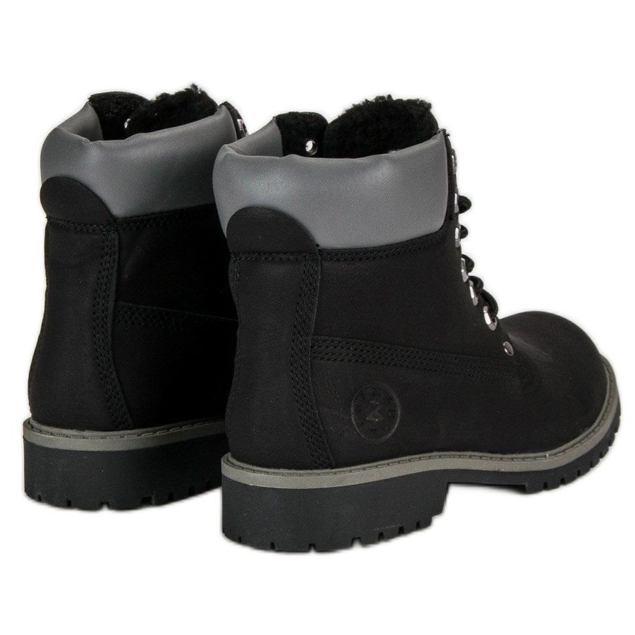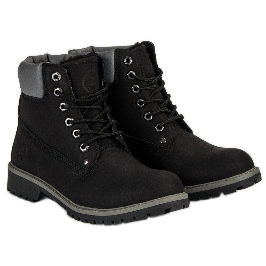 Botinele au toc plat, care asigura confort in timpul utilizarii de zi cu zi. Izolația interioară din piele moale de oaie îți menține picioarele calde chiar și în zilele reci, iar detaliile gri suplimentare introduc un pic de contrast, înviorând culoarea neagră clasică. Talpa din plastic anti-alunecare, calcata, garanteaza stabilitate si siguranta pe diverse suprafete.