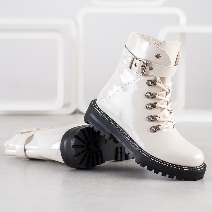 Confectionate din piele ecologica, aceste cizme din piele lacuita atrag atentia prin finisajul lor lucios. Inaltimea superioara de 15-16 cm si latimea de 22 cm asigura confortul la purtare si in acelasi timp expun picioarele intr-un mod atractiv. Un toc înalt de 4 cm, cu o platformă plată de 2 cm, face pantofii comozi chiar și în timpul unei plimbări lungi.