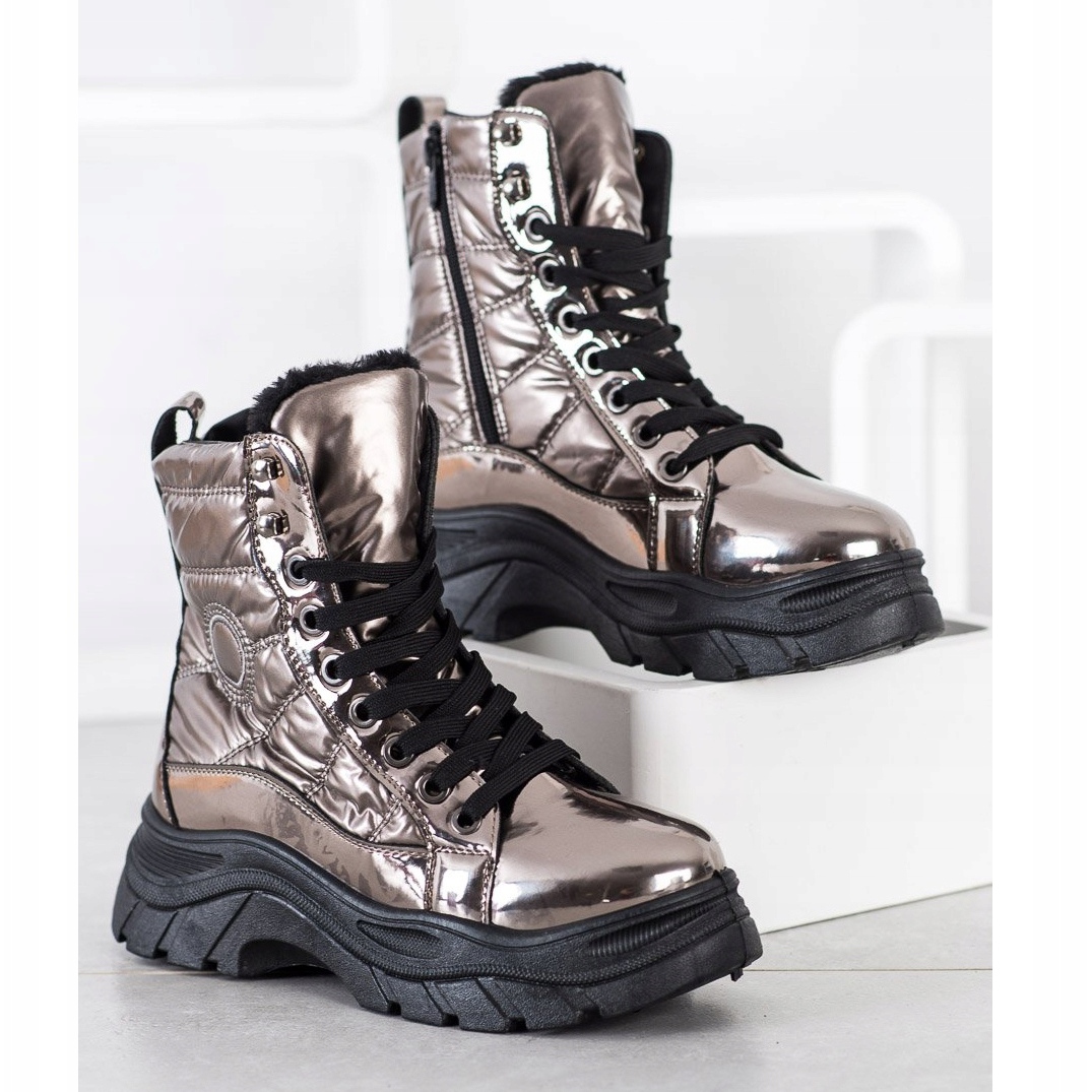 Surprindeți pe toată lumea cu un stil unic datorită SHELOVET Quilted Fashion Trappers într-o nuanță la modă de gri. Aceste botine intrigante, casual, sunt chintesența celor mai noi tendințe în moda urbană. Oferite de brandul SHELOVET, cunoscut pentru atenția acordată detaliilor și confortul la purtare, sunt o alegere excelentă pentru fiecare femeie care apreciază combinația dintre funcționalitate și design la modă.