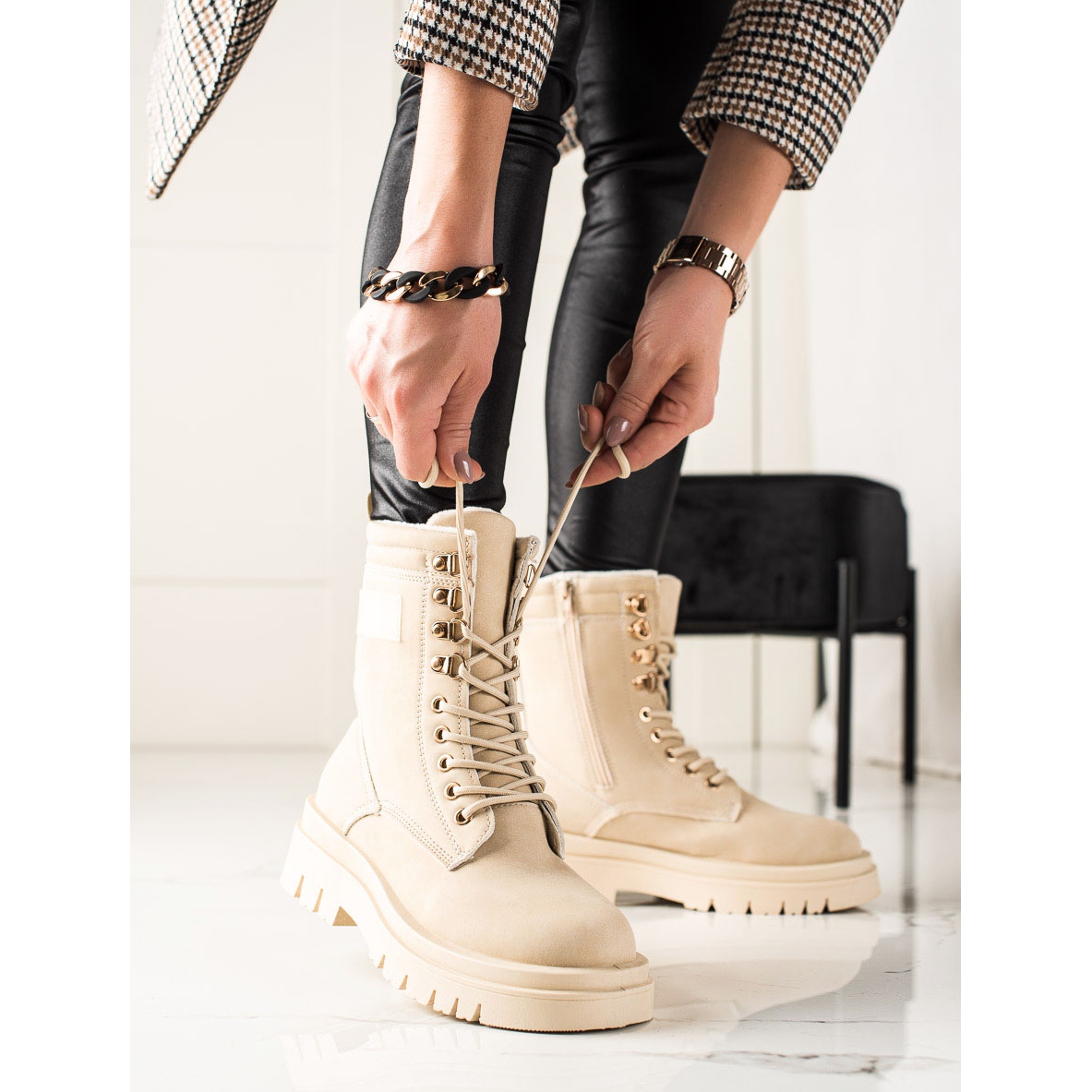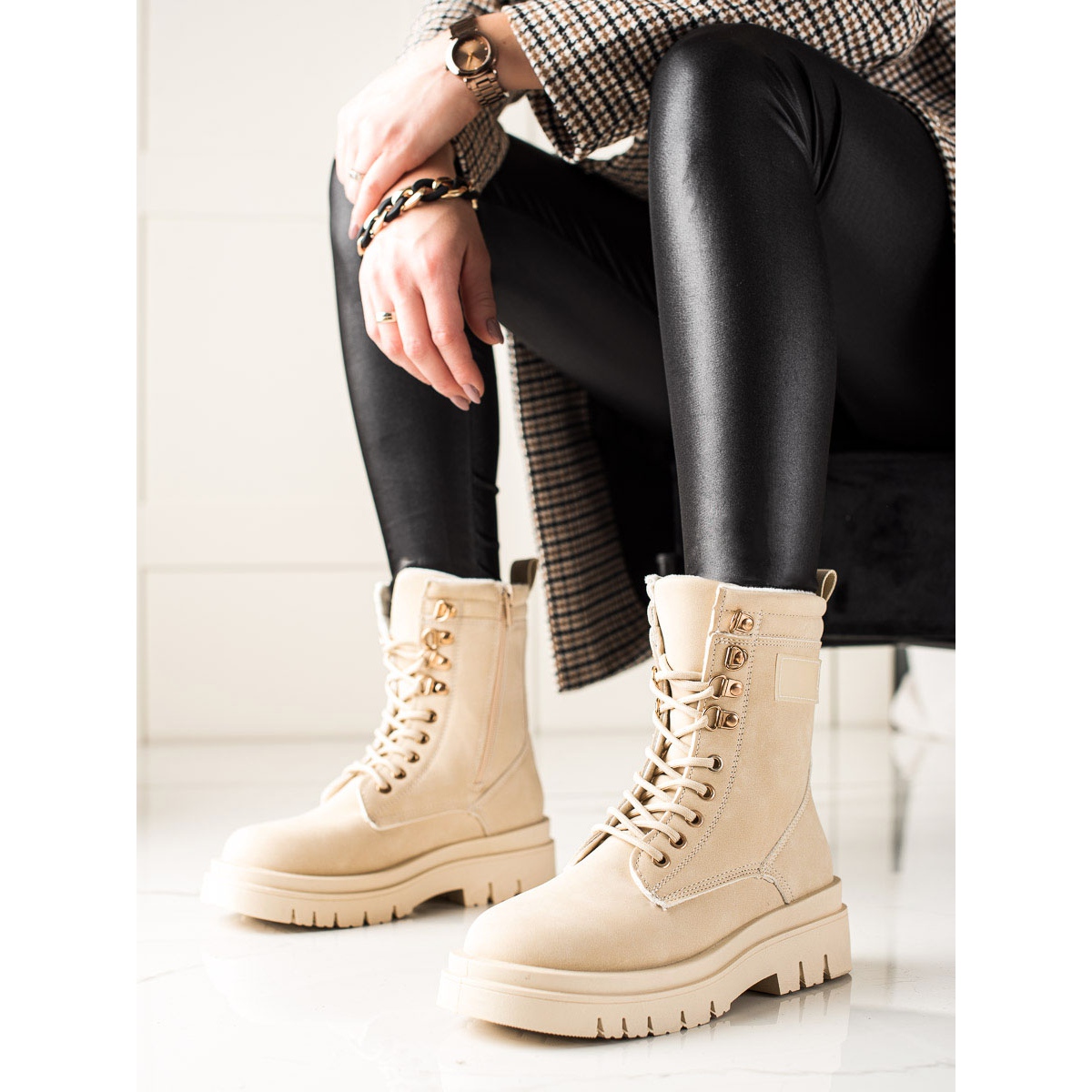 Cizmele TRENDI au un toc încorporat și rigid, care oferă suport suplimentar pentru glezne și confort în timpul plimbărilor lungi. Închiderea cu șireturi permite o potrivire perfectă pe picior, iar vârful rotund adaugă farmec. Înălțimea scăzută a tocului (3 cm) le face o alegere ideală pentru utilizarea de zi cu zi, atât pentru stilurile casual, cât și pentru cele sportive.