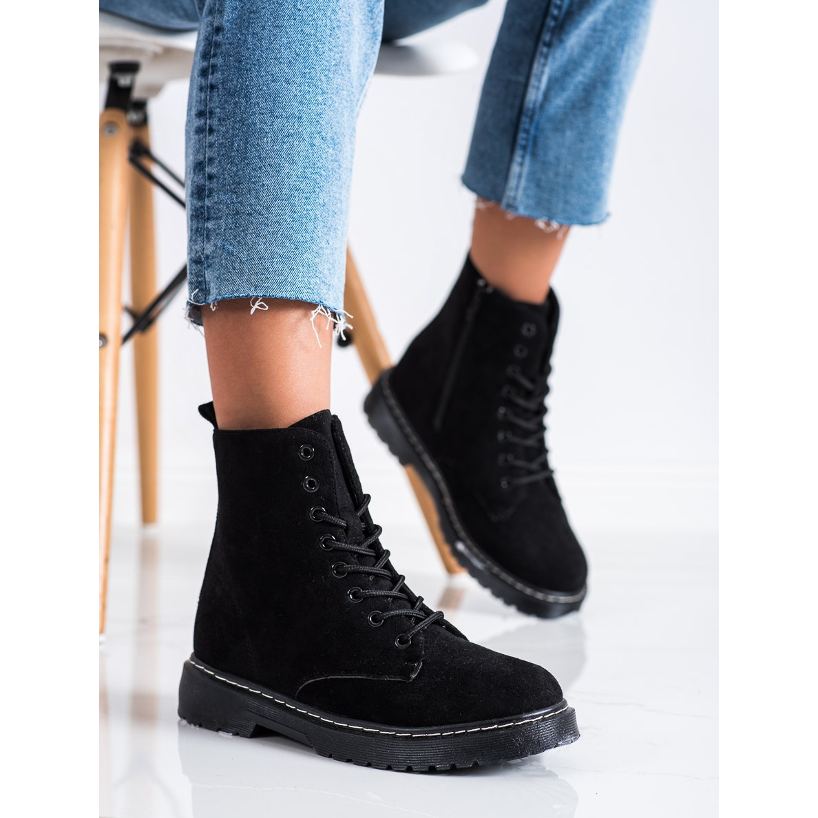 Capcanele din piele intoarsa SHELOVET cu izolatie in negru sunt o alegere perfecta pentru sezonul viitor toamna/iarna. Aceste botine elegante combină confortul și un aspect elegant, făcându-le completarea perfectă pentru orice ținută casual.