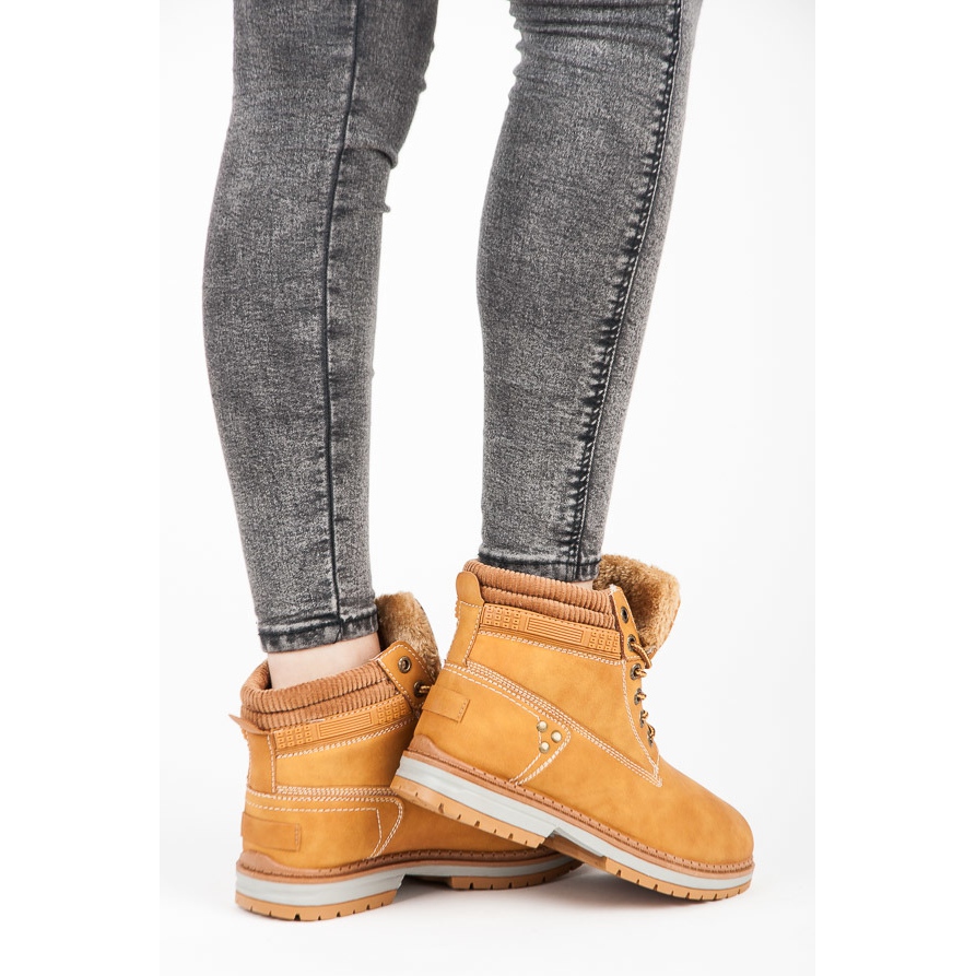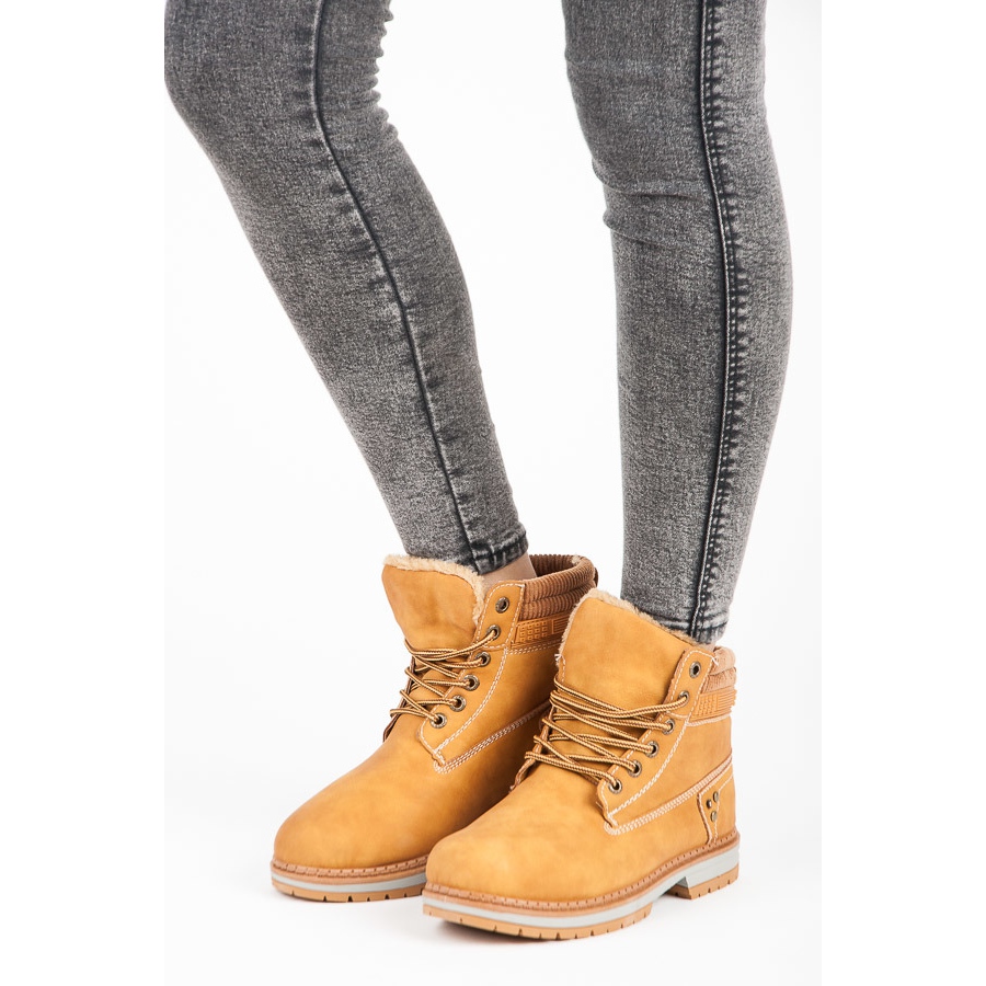 Aceste cizme se disting printr-o închidere cu șireturi, care permite o potrivire perfectă la picior și libertatea de utilizare. Varful rotund adauga farmec, iar tocul plat de 3,5 cm garanteaza confort chiar si in timpul unei zile lungi. Datorită culorii maro universale, acești pantofi se potrivesc perfect cu stilurile sportive de zi cu zi.
