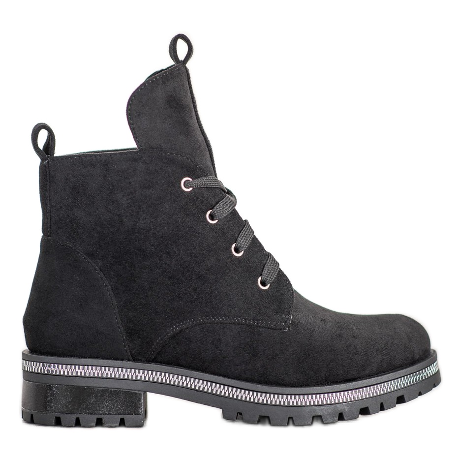 Aceste cizme de drumetie sunt confectionate din piele intoarsa ecologica de calitate superioara, ceea ce le confera un caracter luxos, precum si lipsa unui model, ceea ce le face sa se incadreze perfect in stilul clasic casual. Culoarea lor universală neagră le face să se potrivească cu multe stiluri diferite - perfecte pentru blugi, rochii, precum și ținute mai elegante pentru zilele mai reci.