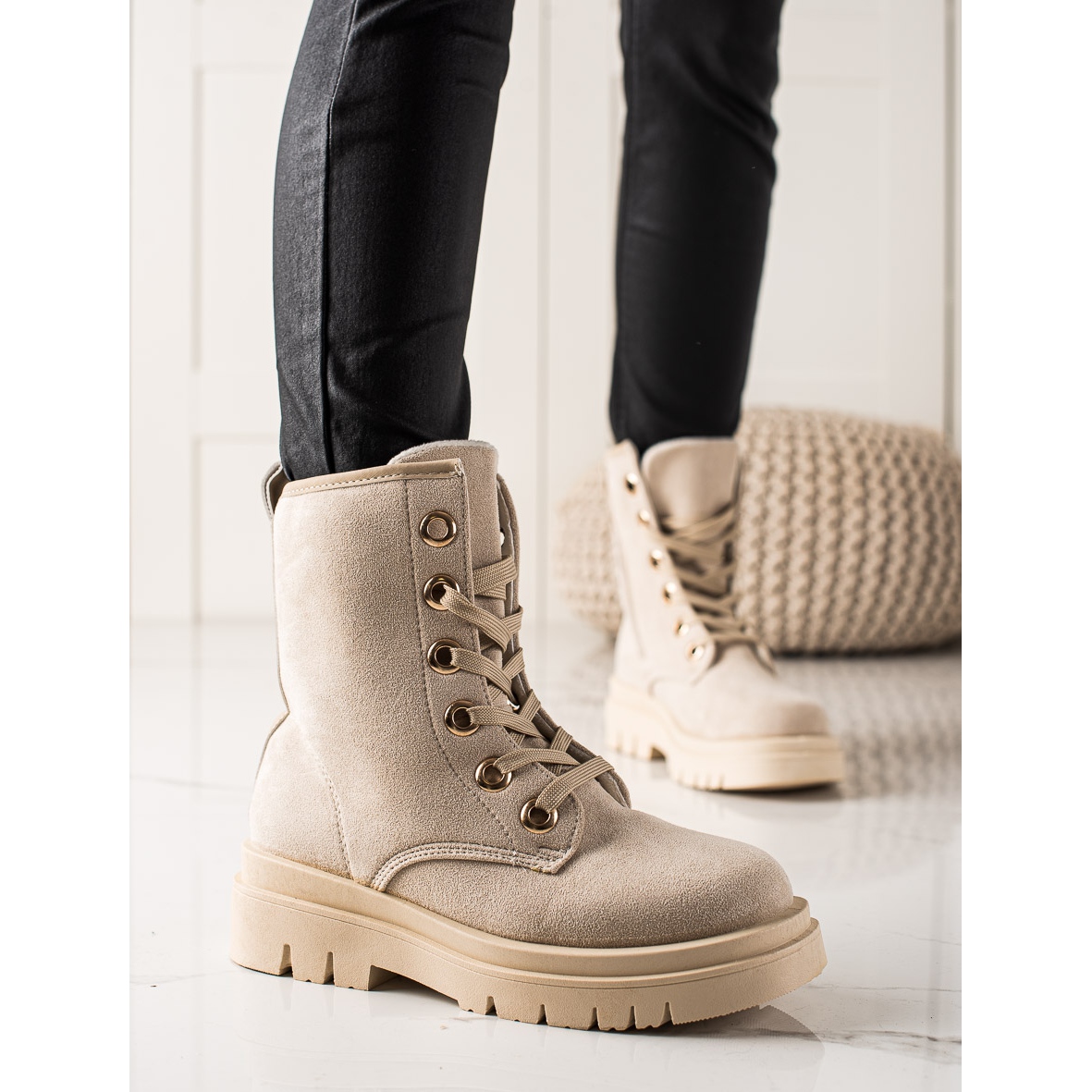 Aceste cizme de piele intoarsa bej sunt solutia perfecta pentru fiecare femeie moderna care vrea sa combine un look la moda cu confortul. Sunt prinse cu fermoar și dantelate, ceea ce le face ușor de pus și scos. Ambalajul original al producătorului sub formă de cutie le face o idee de cadou perfectă. Greutatea produsului cu ambalaj este de 1,2 kg, ceea ce il face la indemana si usor de transportat.