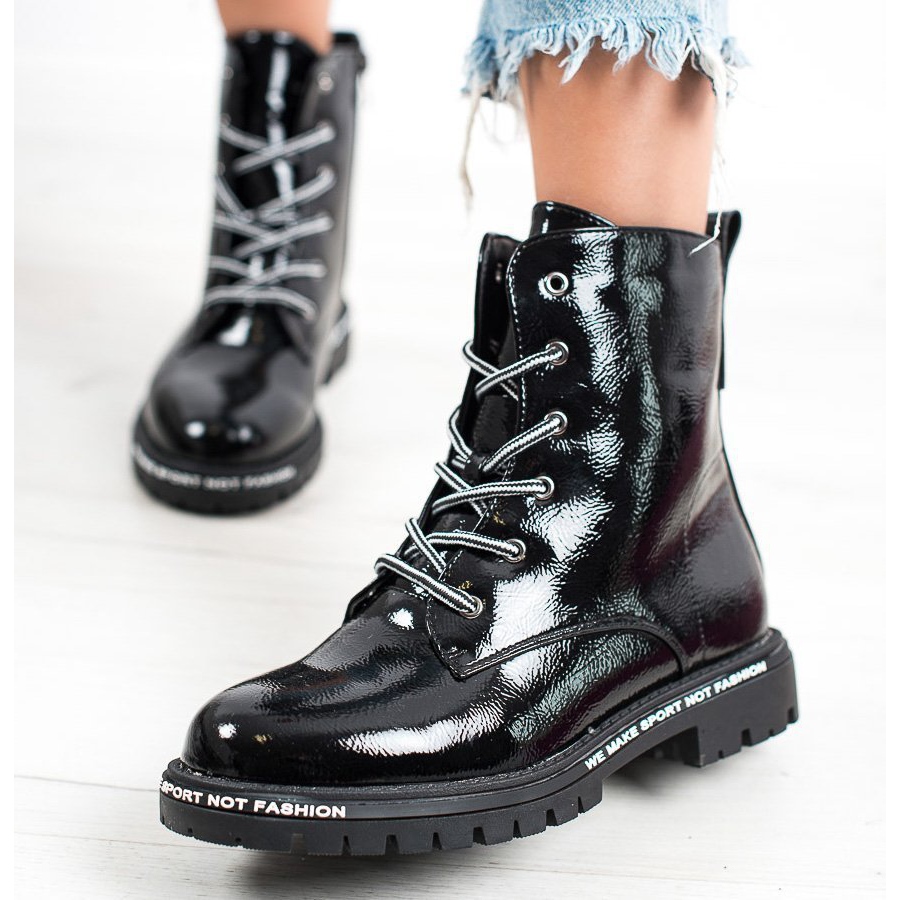 Pantofii sunt prinși cu șireturi și fermoar, ceea ce îi face ușor de pus și scos, iar tocul plat de 3,5 cm te face să te bucuri de stabilitate și confort pe tot parcursul zilei. Talpa din plastic cu benzi de rulare asigură o bună aderență atât pe trotuarele orașului, cât și în condiții mai dificile.