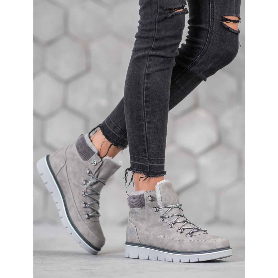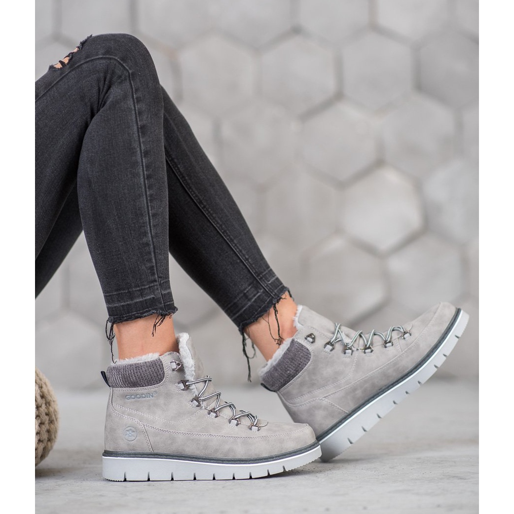 Cizmele cu platformă gri Goodin sunt alegerea perfectă pentru femeile care prețuiesc confortul și stilul într-unul. Fabricati din piele intoarsa, acesti pantofi sunt o alegere excelenta pentru vegani si vegetarieni. Acestea oferă nu doar un aspect atractiv, ci și confort de purtare datorită unei căptușeli moi, rotunjite, care ajunge deasupra gleznei.