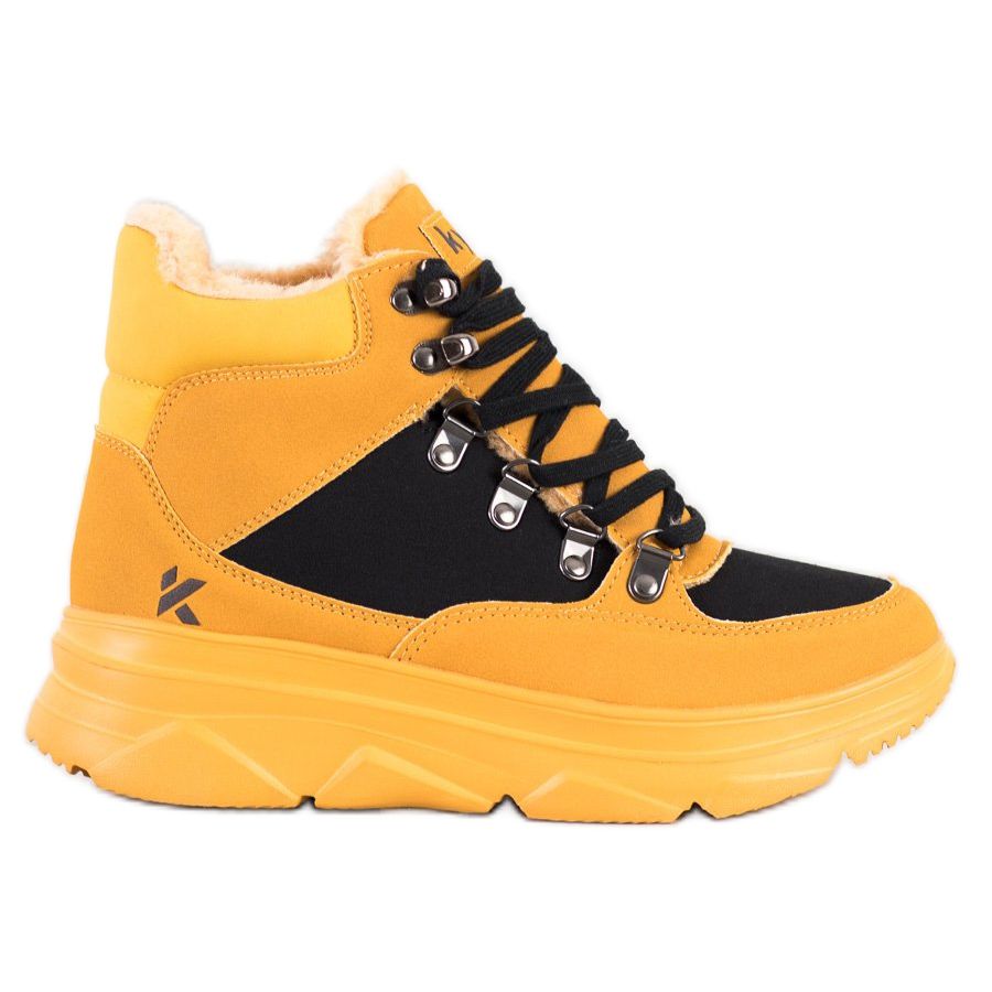 Iată încălțămintea perfectă pentru zilele mai reci - cizme cu platformă ușoare și sportive de la Kylie. Se caracterizează printr-o combinație de culori la modă de negru și galben, care atrage atenția și se încadrează perfect în ultimele tendințe.