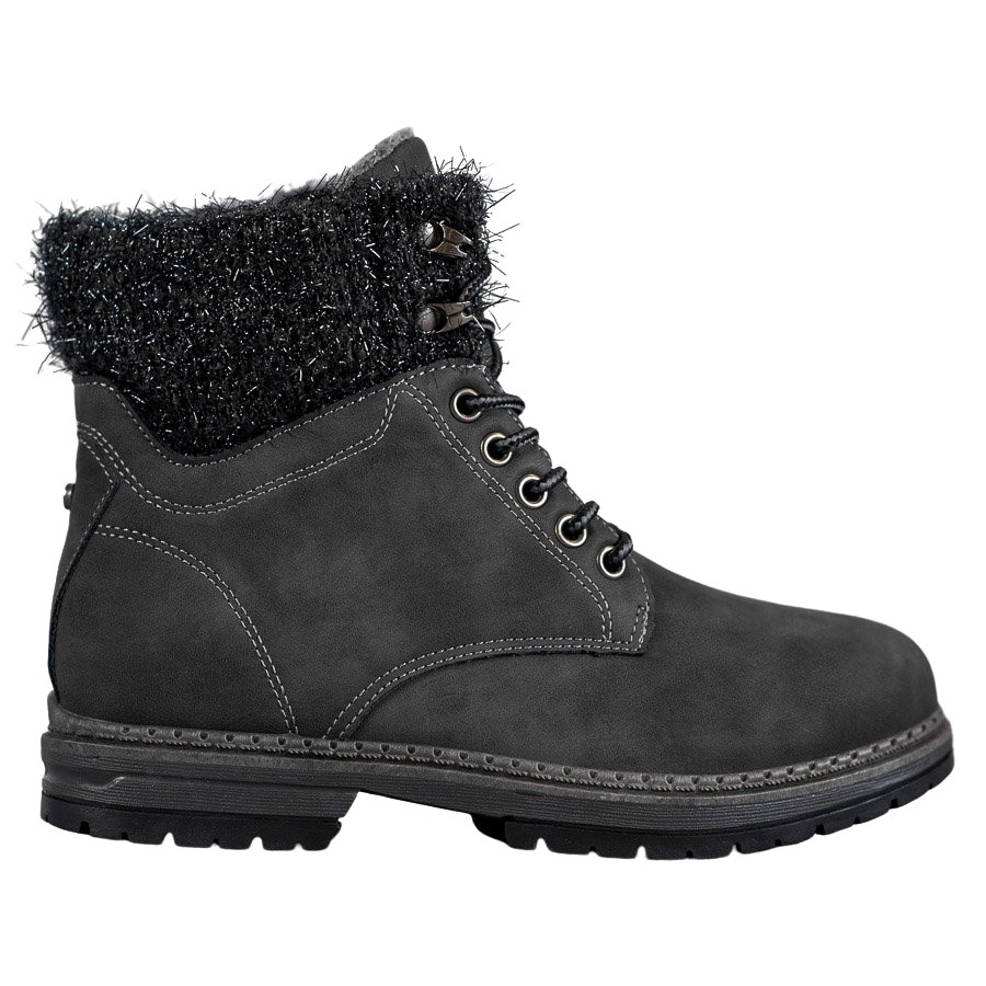 Stilul casual al trapperilor cu un accent de sclipici va adăuga strălucire oricărui stil, iar designul lor până la glezne și tocul moale și închis oferă confort și stabilitate. Închiderea cu șireturi vă permite să ajustați pantofii la nevoile dumneavoastră individuale. Branțul căptușit cu o pătură de pantofi garantează moliciune și confort atunci când este purtat.