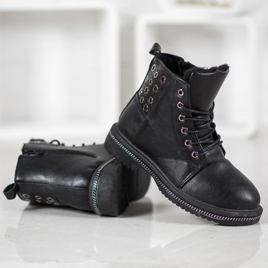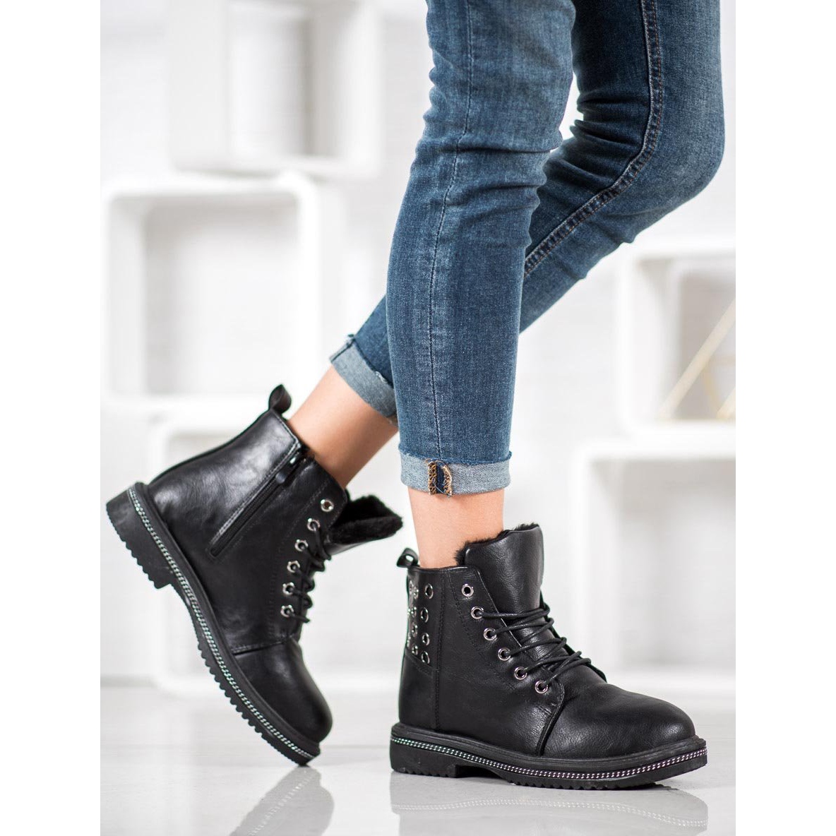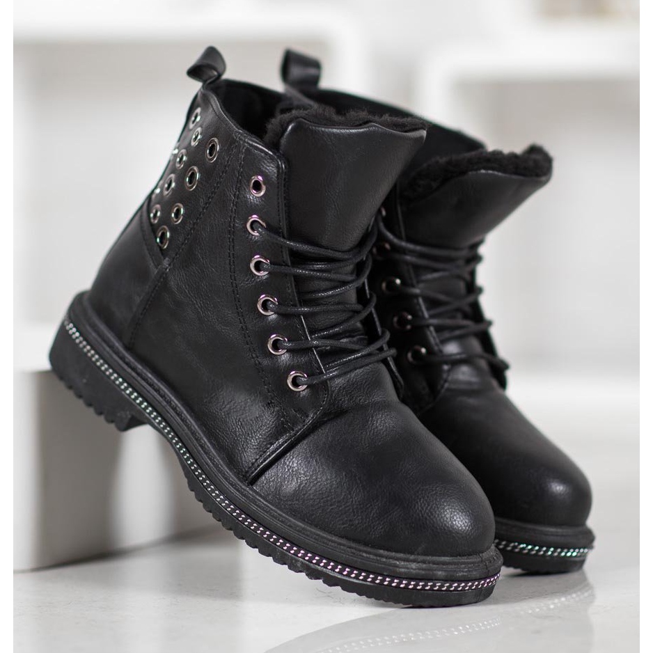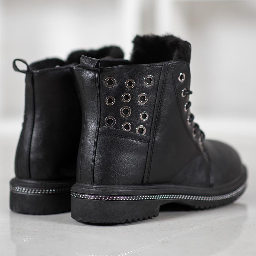 Descoperă ghete extraordinare SHELOVET cu strasuri care vor îndeplini cerințele anotimpurilor de toamnă și iarnă. Acești pantofi stilați într-o culoare neagră elegantă sunt combinația perfectă de confort și accente la modă care vor atrage atenția tuturor. Un strat gros de blană în interiorul cizmelor vă protejează eficient picioarele de frig, astfel încât să vă puteți bucura de căldură chiar și în zilele cele mai reci.
