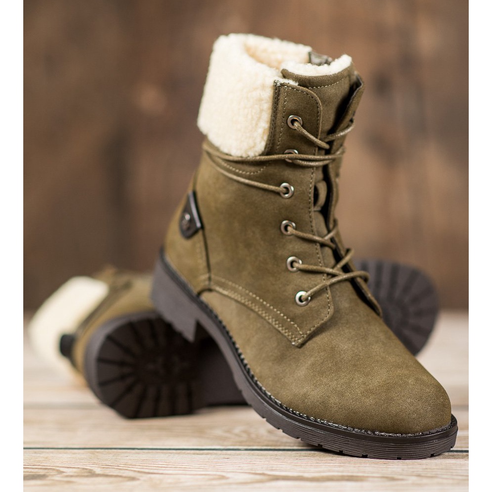 Cizmele Kayla din piele de oaie verde oliv sunt alegerea perfecta pentru femeile care apreciaza confortul, caldura si stilul. Confecționați din piele de căprioară de înaltă calitate, acești pantofi nu numai că arată grozav la picior, dar oferă și o protecție adecvată împotriva frigului în zilele de toamnă și iarnă.