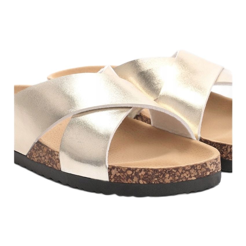Șlapii Vices 2004-60-gold sunt alegerea perfectă pentru femeile care caută confort și stil de zi cu zi. Echipate cu toc plat inalt de 3 cm, ofera confort in timpul plimbarilor de vara sau relaxarii pe plaja. Fabricate din piele ecologică de înaltă calitate, aceste șlapi nu numai că arată grozav, dar sunt și ușor de întreținut.