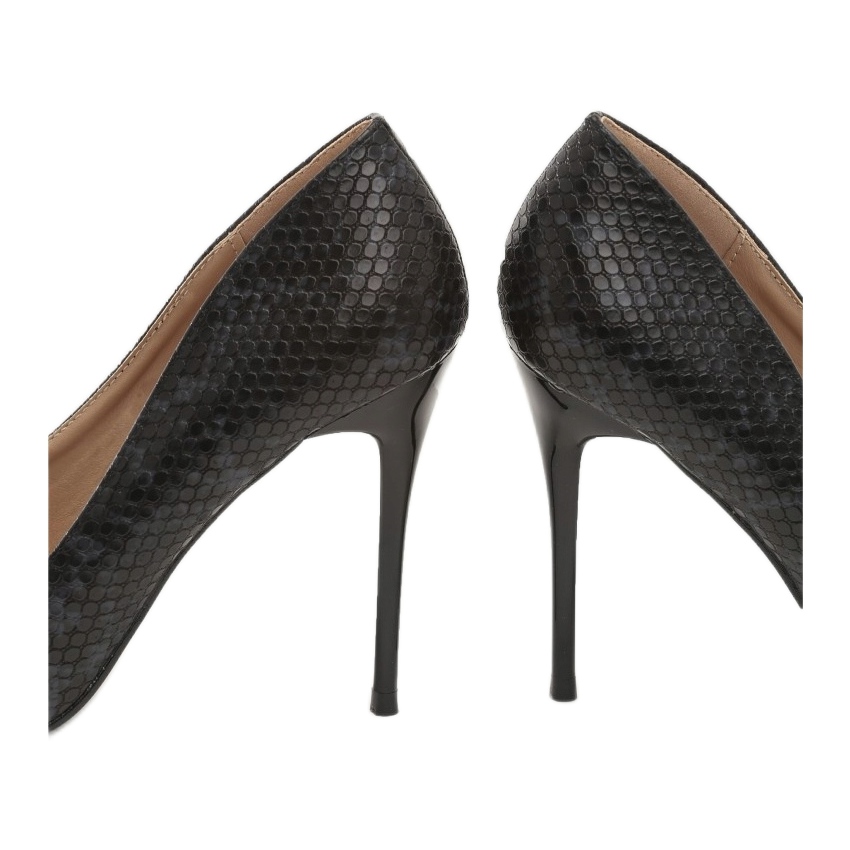 Va prezentam pompele elegante Vices 3309-38 in negru, care imbina designul la moda si confortul. Aceste tocuri unice sunt realizate din material care imită pielea de șarpe, ceea ce le conferă un caracter unic și le face o alegere ideală pentru ocazii importante.