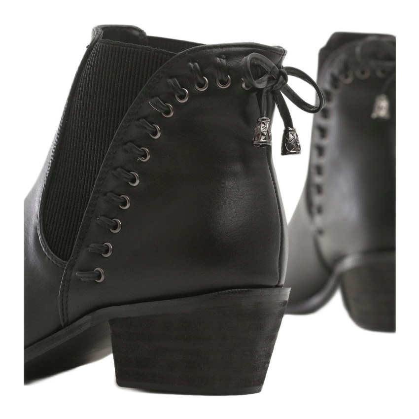 Botinele Vices se caracterizează printr-un toc plat cu o înălțime de 4,5 cm, care asigură stabilitate și confort la purtare. Elemente suplimentare, precum strasurile, le dau un caracter original, usor rock. Cu un vârf de migdale, aceste cizme adaugă eleganță și fac ca fiecare picior să arate unic.