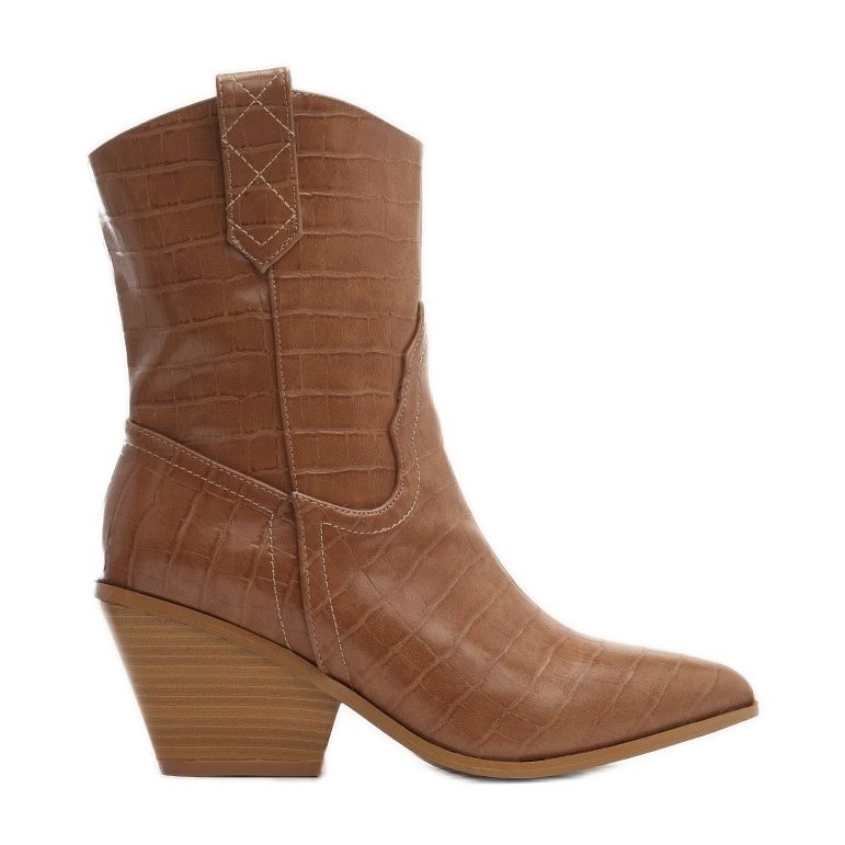Descoperiți stilul și confortul unic cu cizmele de cowboy Vices 8498-68-camel într-o nuanță de maro. Aceste cizme elegante cu toc inalt de 7 cm imbina designul clasic si materialele moderne. Fabricate din piele ecologică de înaltă calitate, arată elegant datorită vârfului ascuțit și a reliefului unic care imită pielea de crocodil.