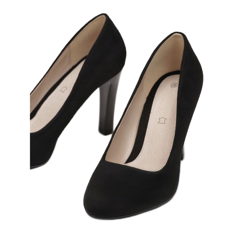 Pompele Vices FL355A-38 în negru sunt alegerea perfectă pentru femeile care apreciază eleganța și confortul. Fabricate din piele de căprioară ecologică cu un finisaj neted, arată elegant și modern. Degetul lor clasic, rotund și tocul bloc îngust de 9 cm le fac perfecte atât pentru ieșirile de zi cu zi, cât și pentru ocazii speciale.