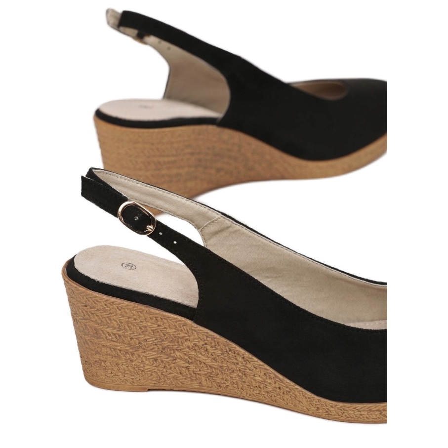 Sandalele Vices FL652-38 de culoare neagră sunt o alegere perfectă pentru femeile care apreciază confortul și un aspect la modă. Așezați pe o platformă mică care se transformă într-o pană elegantă, acești pantofi eleganți se remarcă prin relieful pe talpă, care se referă la modelul împletiturii, conferindu-le un caracter unic.
