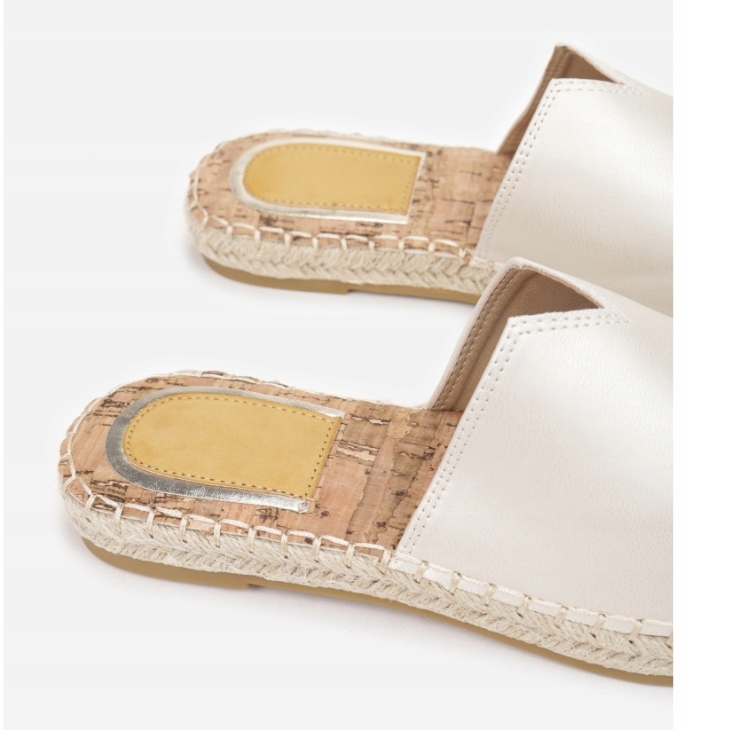 Șlapii sunt echipați cu o inserție din plută, care sporește suplimentar confortul în timpul utilizării pe termen lung. Confectionate din piele ecologica de inalta calitate, acestea imbina un aspect la moda cu valorile ecologice. Culoarea lor universală bej se potrivește bine cu diverse stiluri, de la casual la mai elegant.