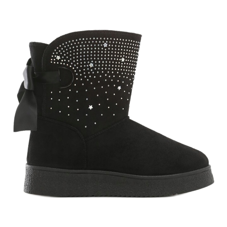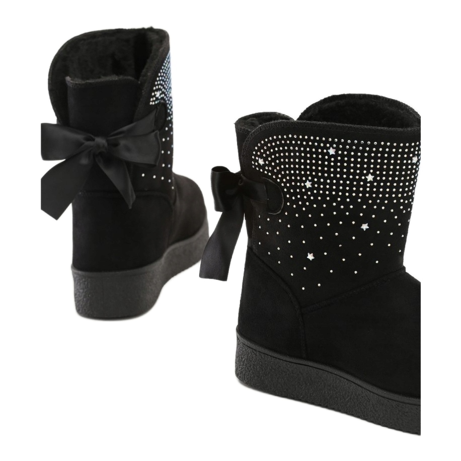 Platforma caracteristica inalta de 3,5 cm adauga confort la mers, iar varful rotund face ca aceste cizme de zapada nu doar practice, ci si la moda. Un avantaj suplimentar sunt strasurile decorative pe partea superioară, care adaugă un accent elegant stilului de zi cu zi. O fundita subtila completeaza intregul, conferind pantofilor un farmec feminin.