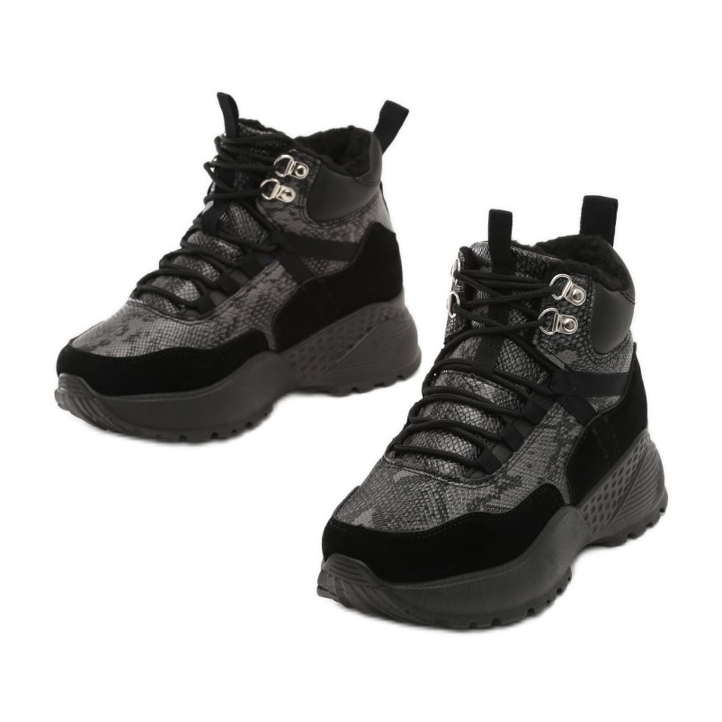 Va prezentam ghetele de dama Vices JB036-136 in negru si gri, care sunt combinatia perfecta de stil si functionalitate. Confecționați din piele ecologică de înaltă calitate și piele ecologică, acești pantofi foarte izolați sunt perfecti pentru zilele mai reci, oferind confort și căldură.