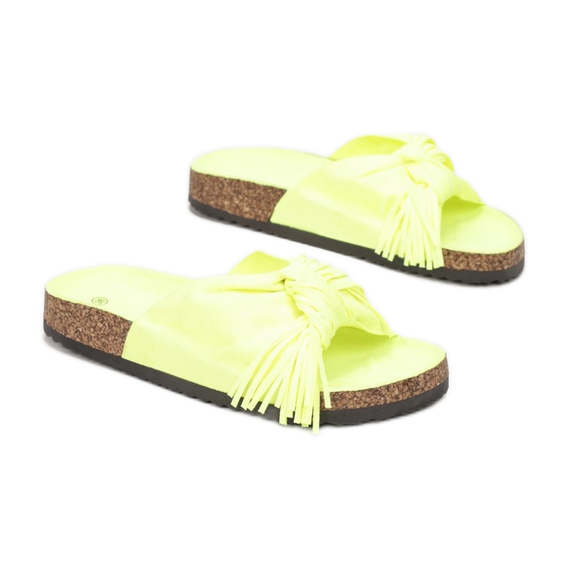 Talpa lor groasă, din plută, oferă o amortizare excelentă în timpul mersului, iar designul slip-on cu vârf rotund și degete deschise face purtarea lor o plăcere pură. O curea lată la vârfuri, legată cu o curea asortată și decorată cu franjuri la modă, adaugă un caracter elegant și casual întregului.