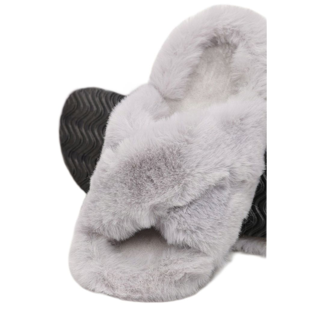 Modelul este slip-on, ceea ce face ca punerea și scoaterea lor să fie foarte simplă și rapidă. Bretelele stabilizatoare, incrucisate la degetele de la picioare nu numai ca captiveaza prin aspectul lor, dar garanteaza si o buna stabilitate a piciorului. Confectionati din material care imita blana, acesti slapi iti infasoara placut picioarele, oferindu-le caldura si confort, perfecte pentru momentele de seara de relaxare acasa.