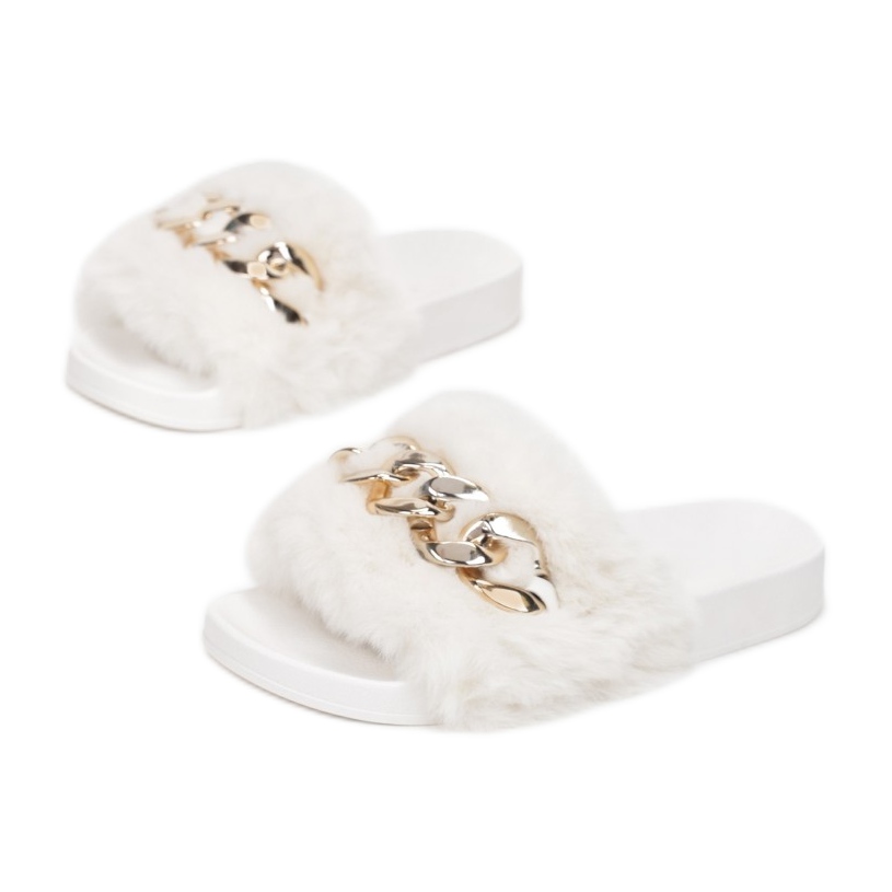 Descoperiți eleganța și confortul cu șlapii Vices NA18-71 într-o culoare albă clasică. Aceste diapozitive slip-on sunt combinația perfectă de stil și funcționalitate, perfecte pentru stilul de zi cu zi. Fața este decorată cu o bandă largă de blană imitație, care le conferă un caracter unic, iar o aplicație elegantă în formă de lanț oferă întregului lucru o notă de designer.