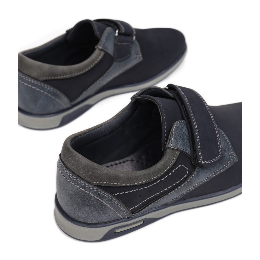 Pantofii Vices T57-00-93-d.blue sunt alegerea perfectă pentru băieții care apreciază confortul și stilul. Acești pantofi plati bleumarin și albastru se remarcă prin designul lor modern și prin soluțiile practice. Terminația superioară joasă din fața gleznei asigură libertatea de mișcare, iar călcâiul rigid stabilizează suplimentar piciorul, ceea ce este extrem de important pentru copiii activi.