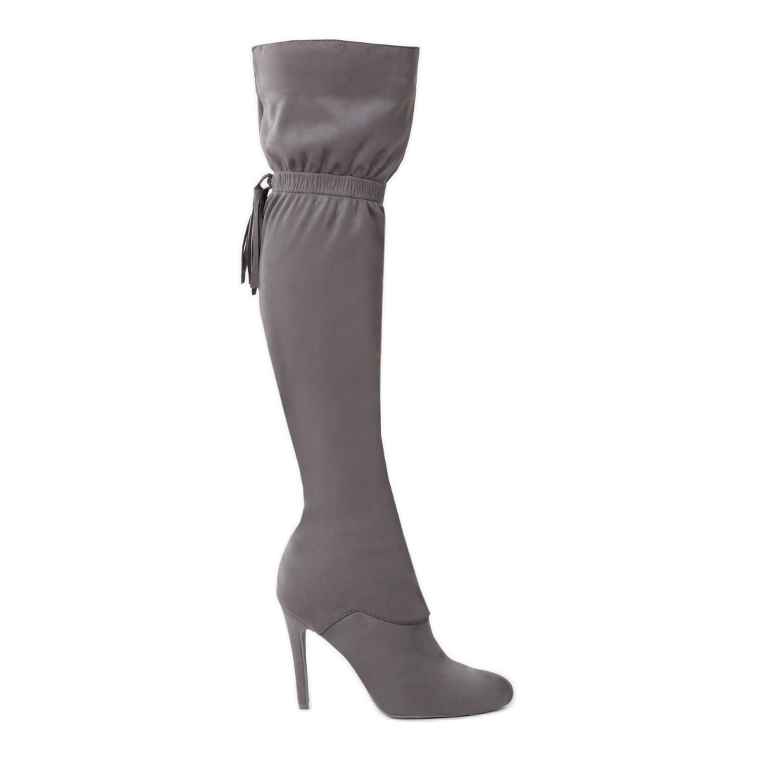 Va prezentam tocuri inalte Vices 1360-5 intr-o nuanta eleganta de gri, care se potrivesc perfect tendintei pantofilor fashion de dama pentru sezonul de toamna. Aceste cizme clasice până la genunchi, confecționate din piele ecologică de înaltă calitate, îmbină stilul și confortul, făcându-le o alegere perfectă pentru orice ocazie.