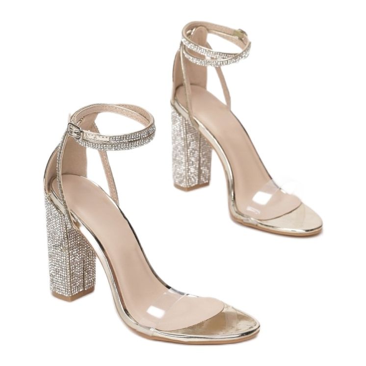 Înălțimea tocului de 10,5 cm, bazată pe un toc bloc, vă permite să adăugați câțiva centimetri de înălțime, asigurând în același timp confortul la mers. Închiderea cu cataramă face ușor de pus și scos, iar elementele suplimentare, cum ar fi strasurile și strasurile, conferă sandalelor un caracter unic și strălucire.