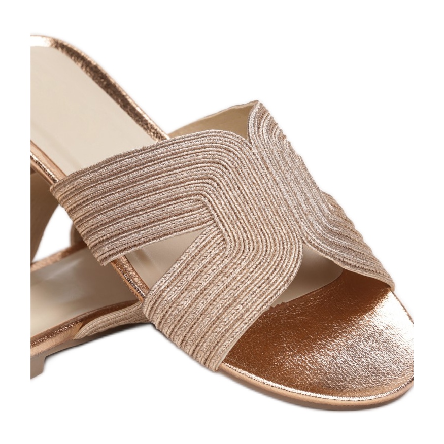 Adaugă o notă de eleganță vieții tale de zi cu zi cu clapetele cu slip-on Vices 2038-449 aurii. Acești pantofi eleganti au fost creați pentru femeile care apreciază un aspect casual, dar eficient. Degetul deschis, rotund și partea superioară constând din bretele conectate cu crestaturi subtile adaugă lejeritate și modernitate.