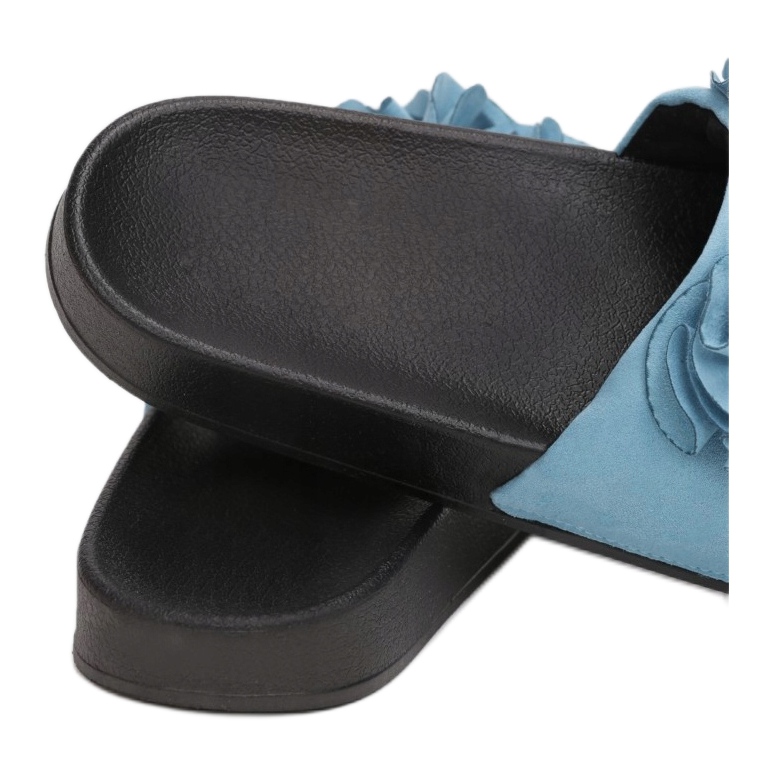 Datorită designului cu vârf deschis, rotund și slip-on, șlapii sunt extrem de confortabili și ușor de îmbrăcat. Cureaua atrăgătoare pentru degete, decorată cu un decor mare în formă de floare, le conferă un caracter original, iar pielea ecologică de înaltă calitate le face să arate extrem de elegante.