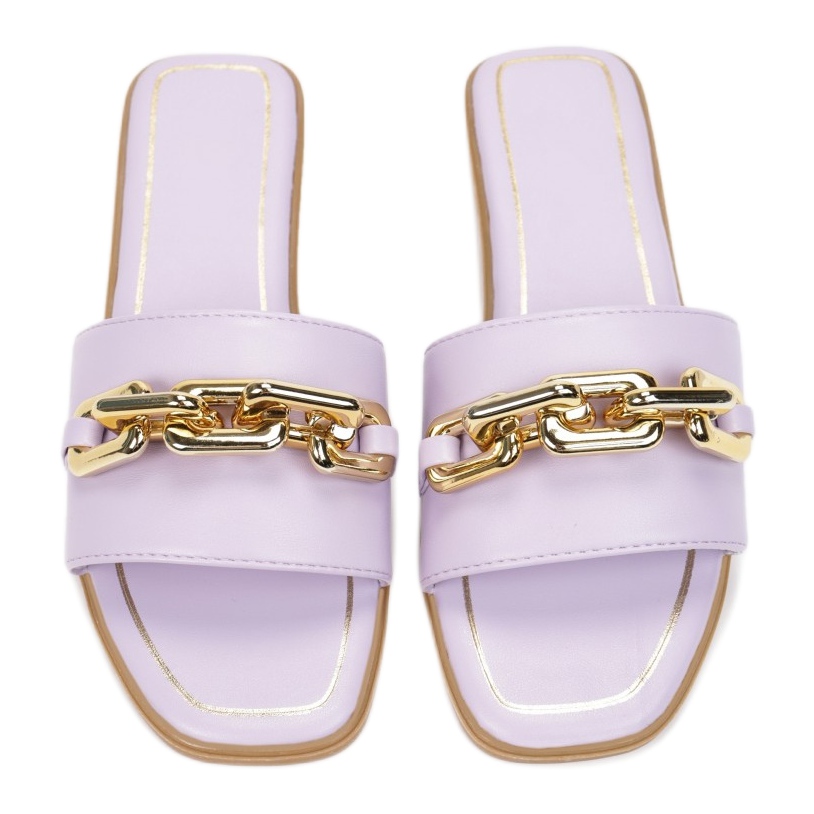 Înfășurați-vă picioarele în stil și confort cu șlapii Vices 2338-90 într-o frumoasă culoare violet. Aceste diapozitive slip-on sunt combinația perfectă de design modern și funcționalitate, perfecte pentru utilizarea de zi cu zi. Decorate cu un motiv tie-dye și un lanț auriu elegant pe o curea largă, au un aspect unic, atrăgător.