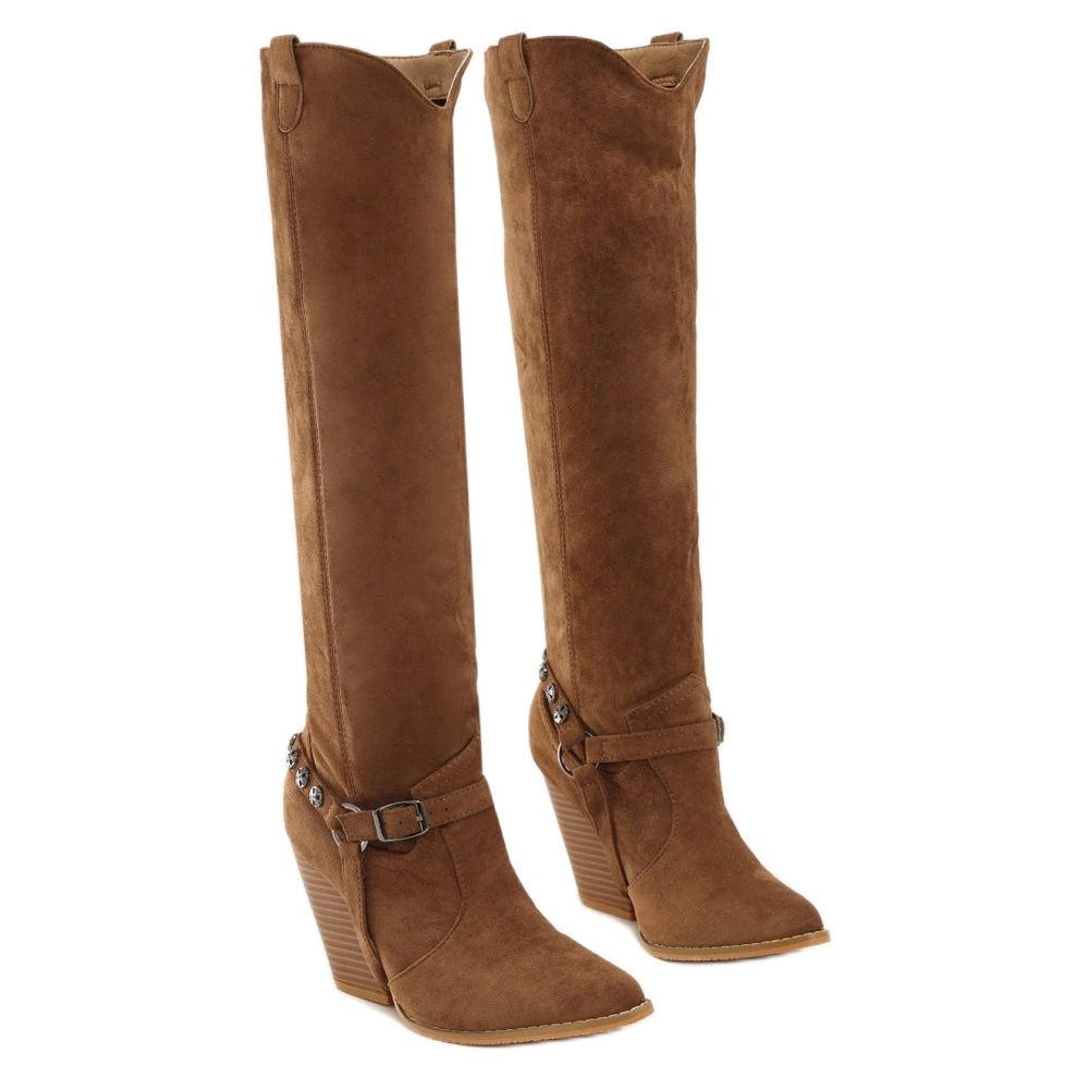 Va prezentam cizmele de cowboy maro Vices 3323-54, care sunt combinatia perfecta de stil si confort. Confectionate din piele intoarsa ecologica de inalta calitate, aceste cizme cu toc peste genunchi vor atrage cu siguranta atentia fiecarui iubitor de accesorii la moda.