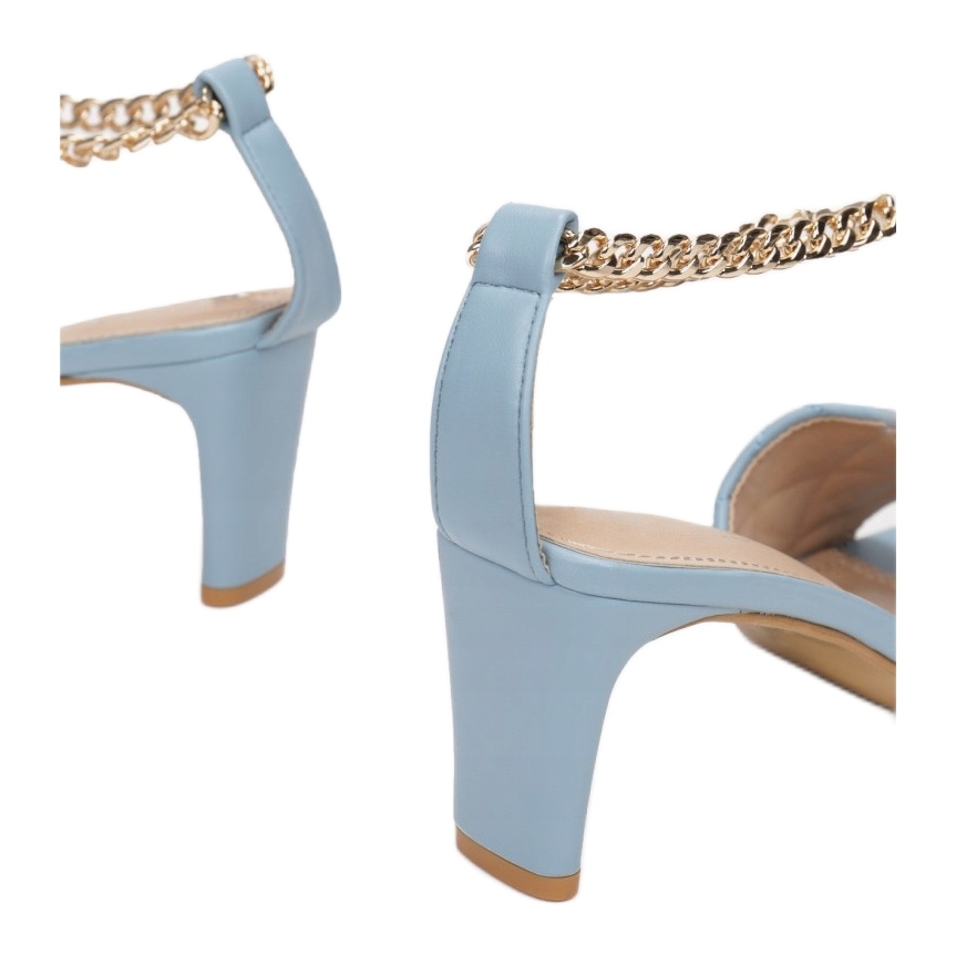 Sandalele sunt confecționate din piele ecologică de înaltă calitate, ceea ce asigură atât durabilitate, cât și ușurință de îngrijire. Degetul pătrat deschis nu este doar la modă, ci și foarte confortabil, iar centura largă cu cusături în față adaugă caracter întregului stil. Un element neconventional este lantul cu carabina care decoreaza spatele pantofului – este un detaliu care atrage atentia si face ca aceste sandale sa fie cu adevarat unice.