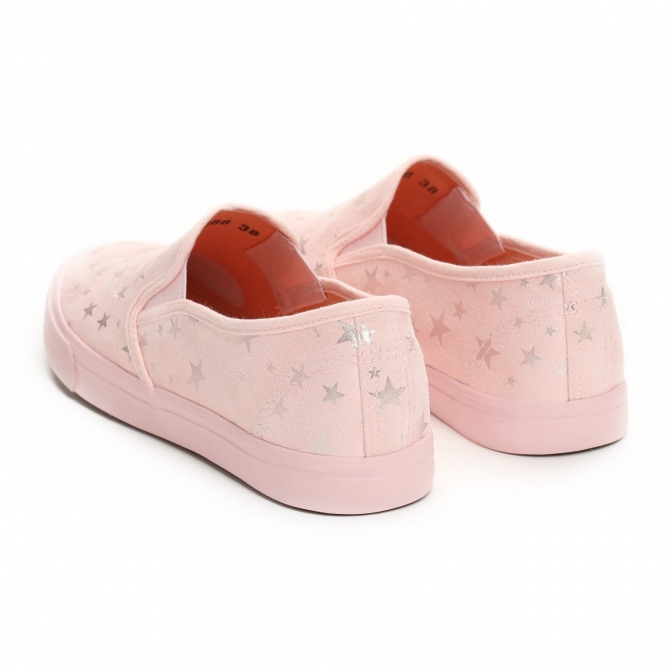 Adidașii se caracterizează printr-o închidere practică, slip-on, care le permite să fie îmbrăcați rapid și ușor. Varful rotund si talpa plata din cauciuc roz asigura confortul la purtare si libertatea de miscare. Interiorul pantofilor este căptușit cu material textil moale, care sporește suplimentar confortul de utilizare.