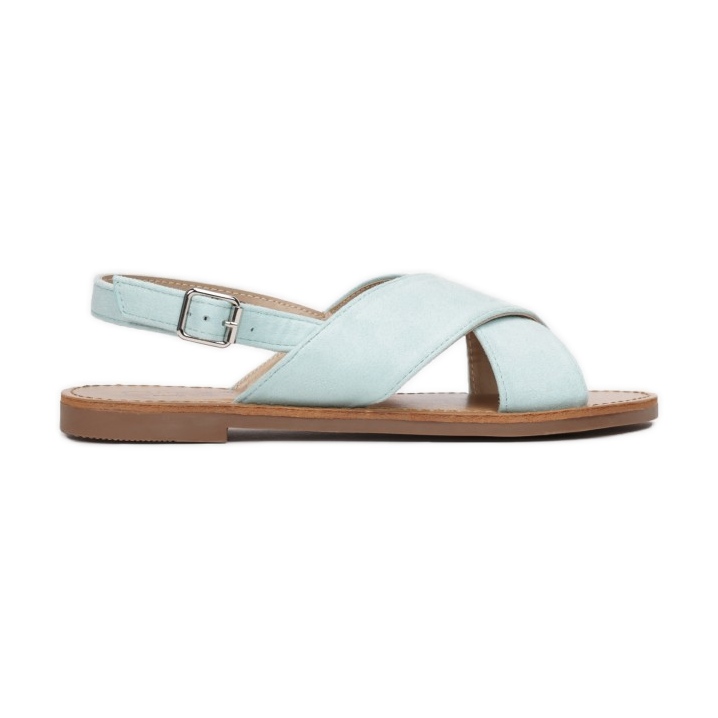 Sandalele sunt prevazute cu o catarama care se inchide deasupra gleznei, care permite o potrivire perfecta pe picior si asigura confortul la purtare. Degetele deschise și călcâiul le conferă lejeritate, iar degetul rotunjit le subliniază și mai mult caracterul elegant. Bretelele încrucișate din piele de căprioară ecologică garantează nu doar un aspect la modă, ci și un suport adecvat pentru picior.