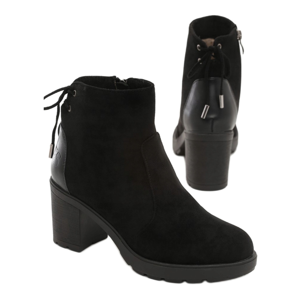 Cu un vârf rotund și o înălțime a tocului de 7,5 cm, acești pantofi nu sunt doar stilați, ci și confortabili. Fabricate din piele de căprioară ecologică de înaltă calitate, acestea asigură durabilitate excelentă și confort la purtare. În plus, izolația face cizmele perfecte pentru zilele mai reci, iar talpa sintetică garantează o bună aderență.