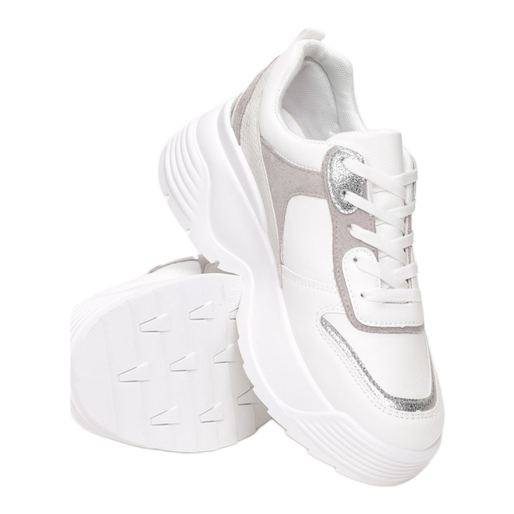 Adidașii de damă Vices 8541-71 în alb, argintiu și gri sunt o alegere perfectă pentru fiecare femeie care prețuiește confortul și un look la modă. Realizați din piele ecologică de înaltă calitate și piele de căprioară ecologică, acești pantofi combină stilul cu funcționalitatea. Designul lor modern este îmbogățit cu cusături subtile și inserții care imit pielea de șarpe, ceea ce adaugă caracter și originalitate.