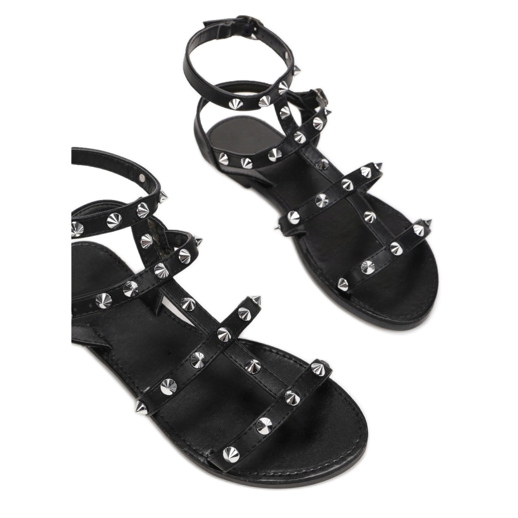 Datorită tocului plat de 1,0 cm înălțime, picioarele tale se vor odihni și în același timp vor căpăta un aspect la modă datorită finisajului suplimentar cu strasuri și știfturi. Sandalele sunt prinse cu cataramă, ceea ce permite o potrivire perfectă la picior.