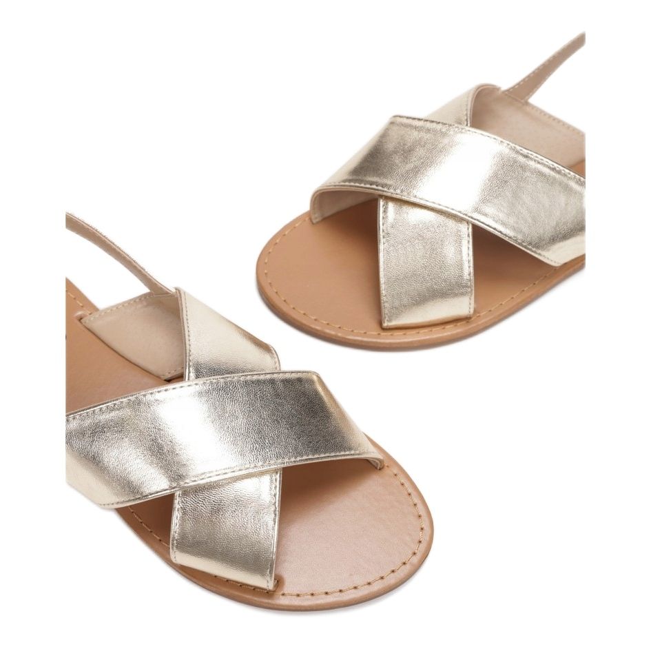 Piciorul este susținut de bretele largi, încrucișate, care asigură stabilitate și confort la purtare, iar tocul deschis adaugă lejeritate sandalelor. Închiderea cu o curea subțire cu cataramă la gleznă permite o ajustare perfectă la nevoile individuale, ceea ce face ca sandalele să fie practice și ușor de pus.