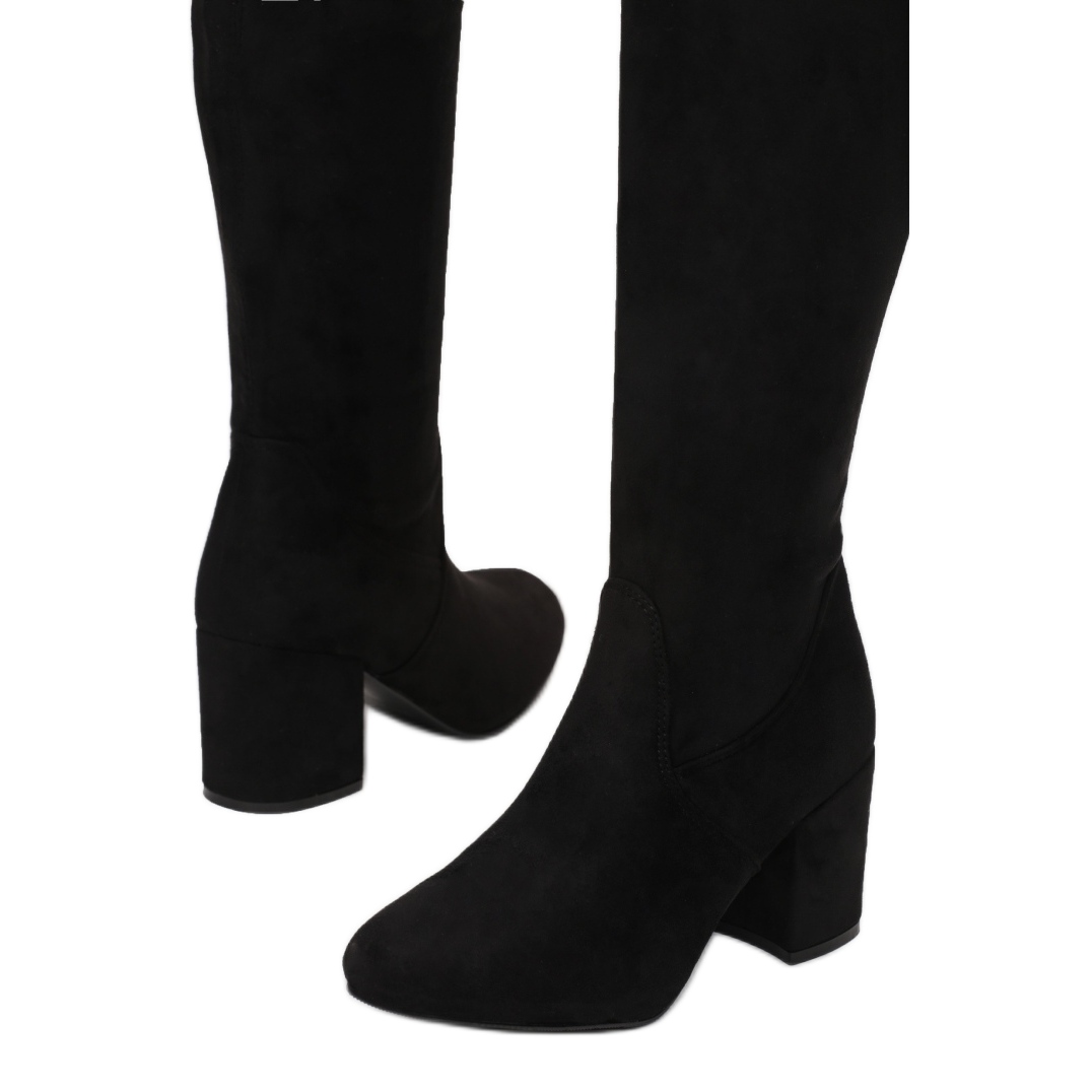 Aceste cizme clasice cu toc mic, inalte de 7 cm, vor completa cu siguranta orice stil, de la tinute de zi cu zi pana la seturi mai elegante. Varful rotund si partea superioara care ajunge pana la genunchi garanteaza confort si practic. Un avantaj suplimentar este fermoarul, care ușurează încălțarea pantofilor.