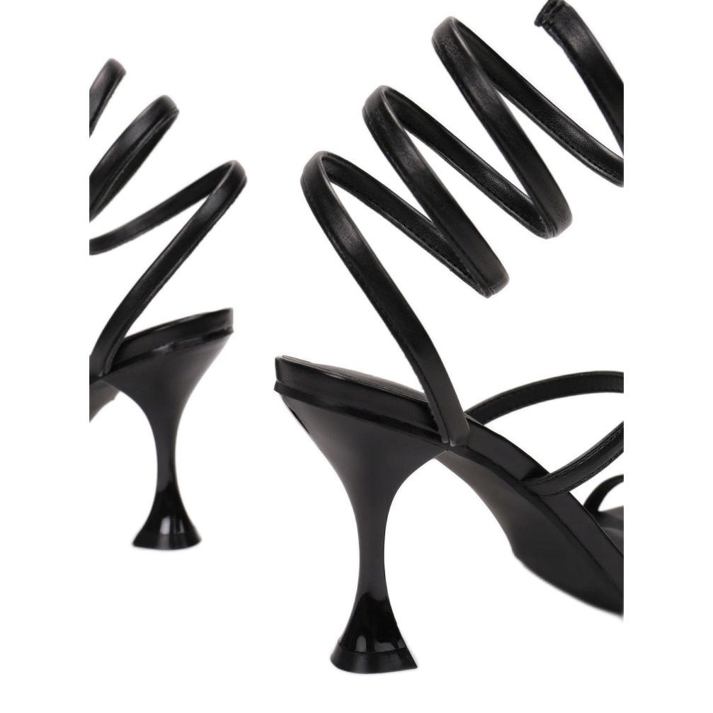 Sandalele sunt confecționate din piele ecologică de înaltă calitate, ceea ce le face nu numai la modă, ci și ecologice. Lipsa nasului și închizătorul original le conferă un caracter unic. Tocul stiletto inalt de 8 cm folosit confera siluetei lejeritate si eleganta, punand in valoare formele feminine.