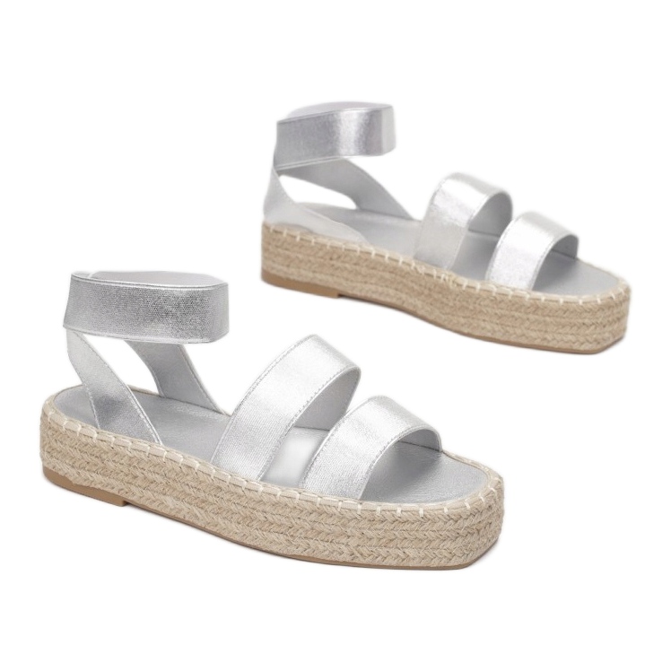 Talpa acestor espadrile este tunsă cu împletitură de iută, ceea ce le conferă un caracter unic și lejeritate. Degetul deschis, pătrat, le oferă un stil modern, iar culoarea argintie metalizată le face o completare perfectă atât pentru stilurile de zi cu zi, cât și pentru cele mai elegante.