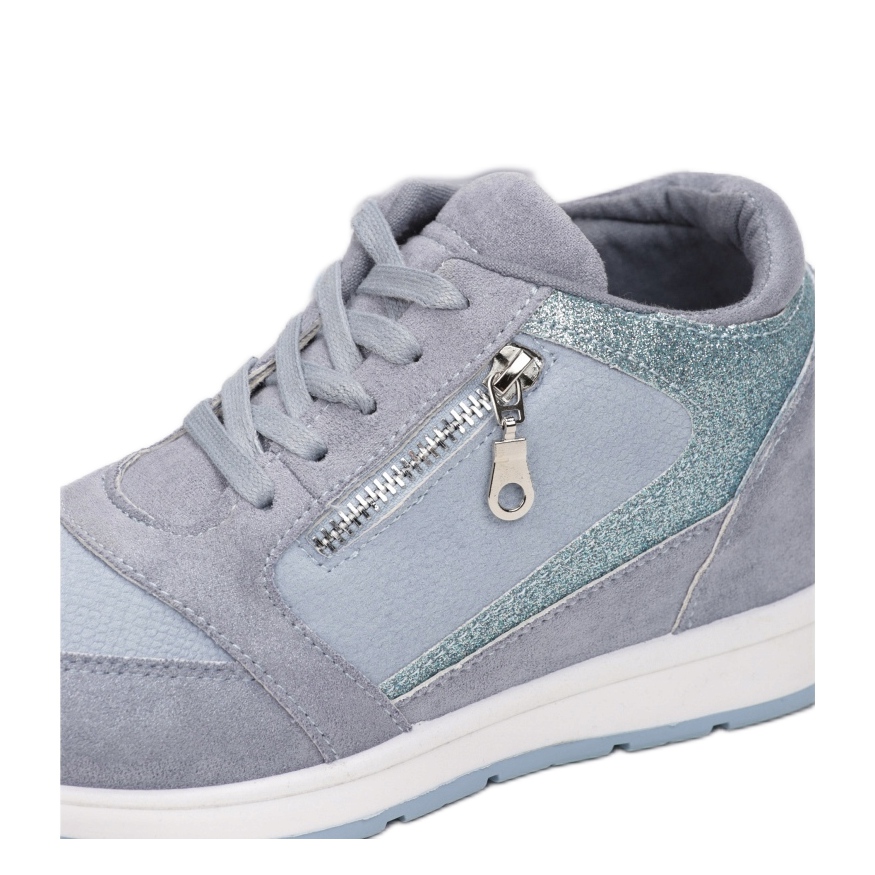 Acest model se distinge prin mai multe nuante de albastru, care ii confera un caracter unic. Detaliul decorativ din material strălucitor de pe spatele pantofului atrage atenția și adaugă eleganță întregului stil. Închiderea cu șireturi este atașată la spatele căptușelii deasupra limbii, ceea ce permite o potrivire perfectă pe picior.
